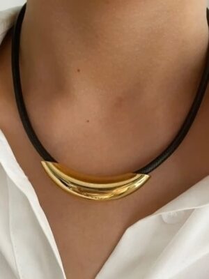 Molina – Collar de cuero y acero inoxidable enchapado en oro 18k