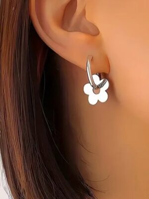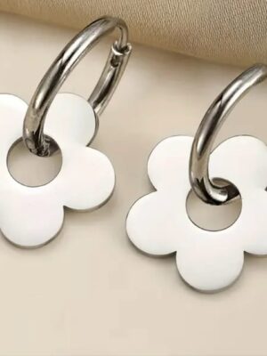 Flower Silver – Arete de acero inoxidable