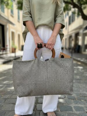 Zoe Rosado – Maxibolso de algodón y asa de madera