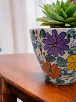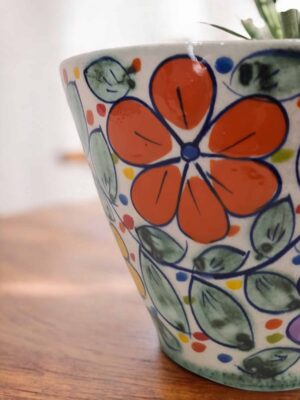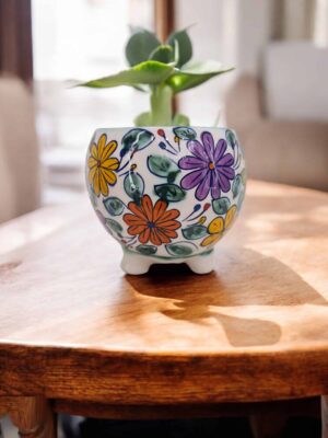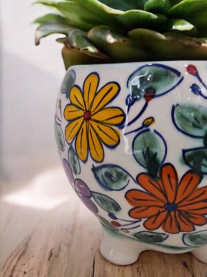 Flor Colorida – Macetín Huevo con patitas de cerámica