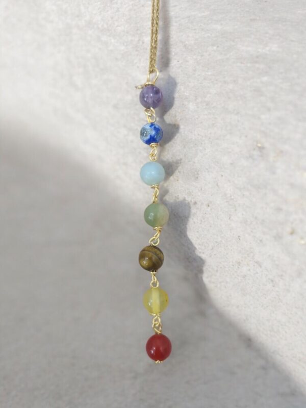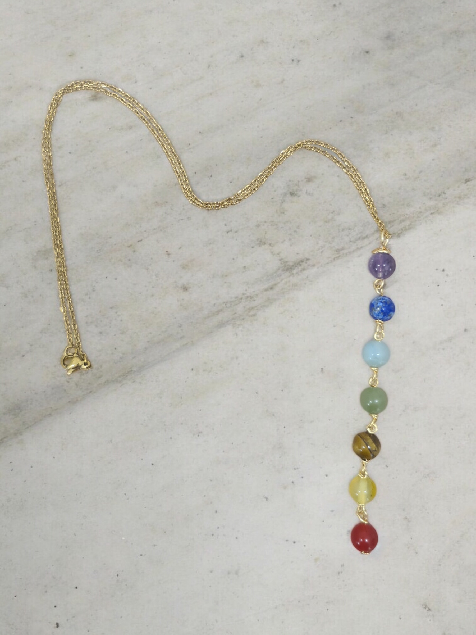 | Composición | Cobre entorchado / Cuarzo cristal / Amatista / Lapiz Lazuli / Amazonita / Ágata verde / Ojo de tigre / Calcita amarilla / Ágata roja. |