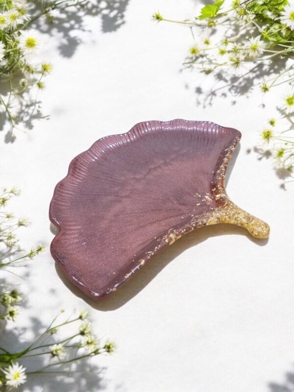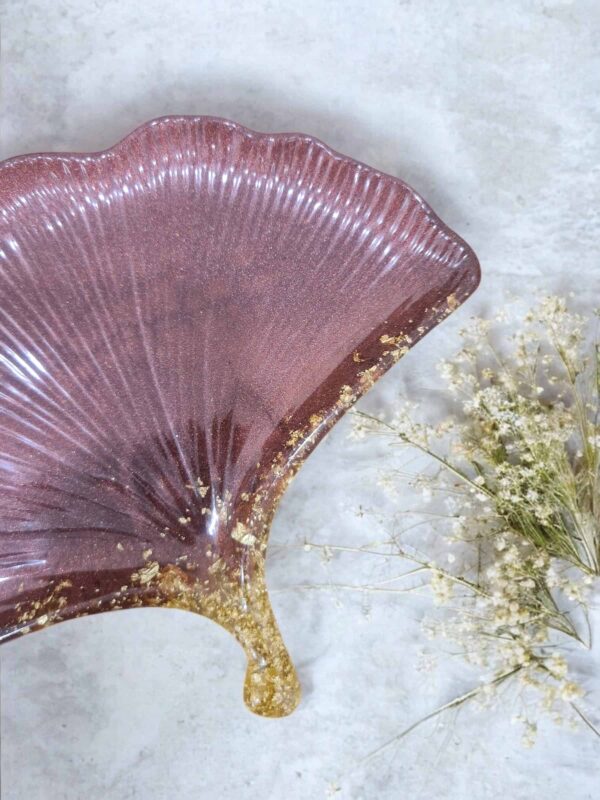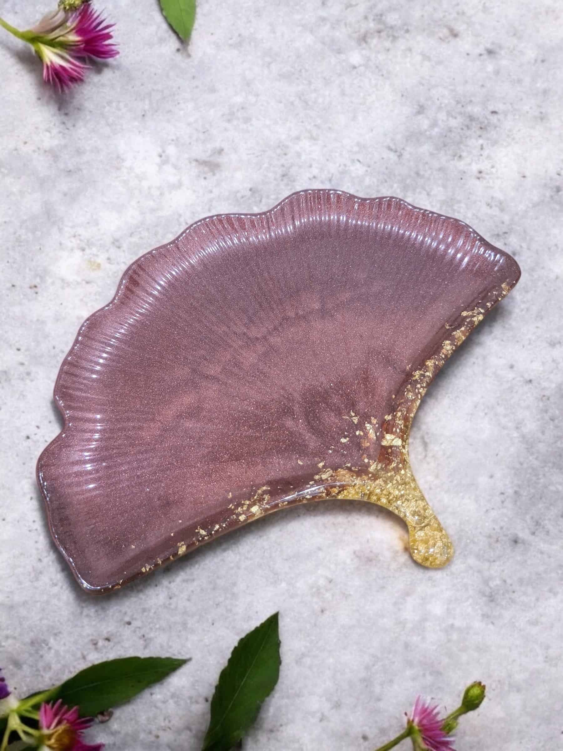 Joyero con forma de abanico elaborado a mano en resina de alta resistencia y acabado brillante. Sus delicados relieves permiten organizar y proteger anillos, aretes u otras piezas pequeñas. Ligero, duradero y fácil de limpiar; ideal para el tocador o como detalle de regalo.