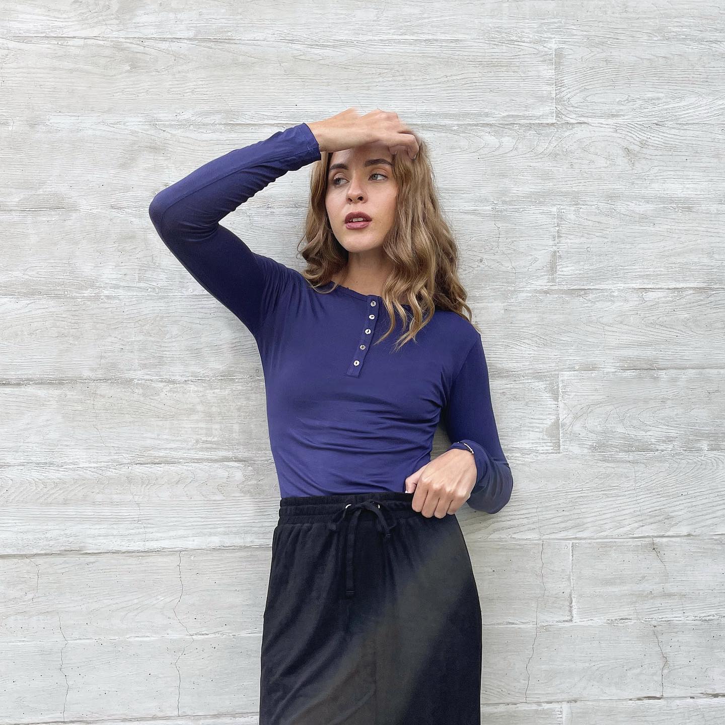 Polo manga larga hecha en mezcla de algodón y viscosa, lo que la hace súper suavecita. Es el básico de invierno, con detalle de botones a la altura del pecho y mangas largas que debes agregar a tu armario.
