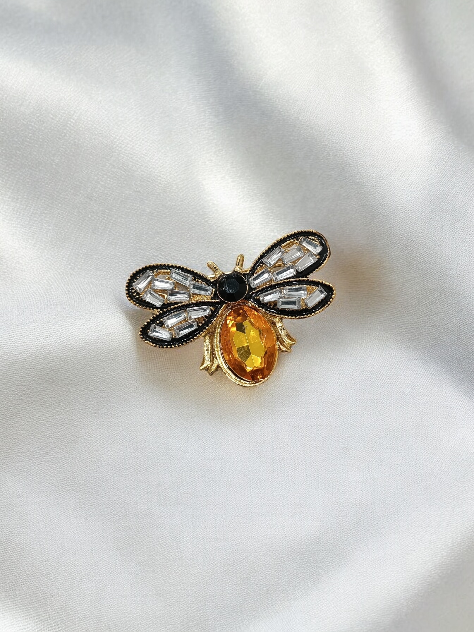 Broche con diseño de abejita, elaborado en fantasía fina y pedrería, es una excelente adición para hacer de tu look mas divertido y original.