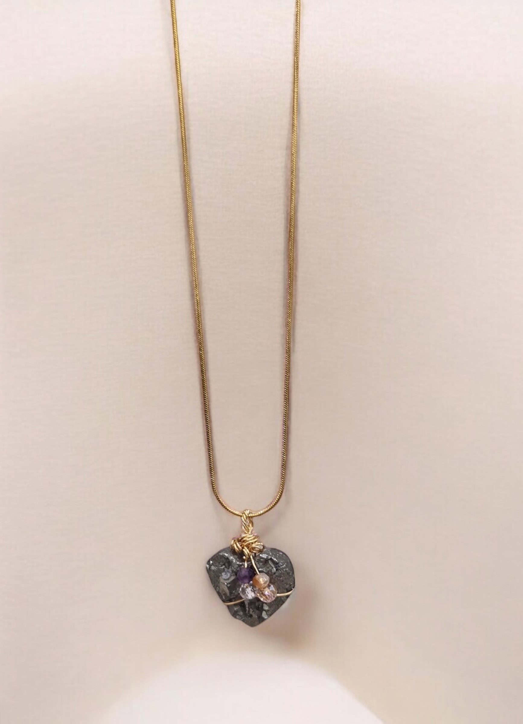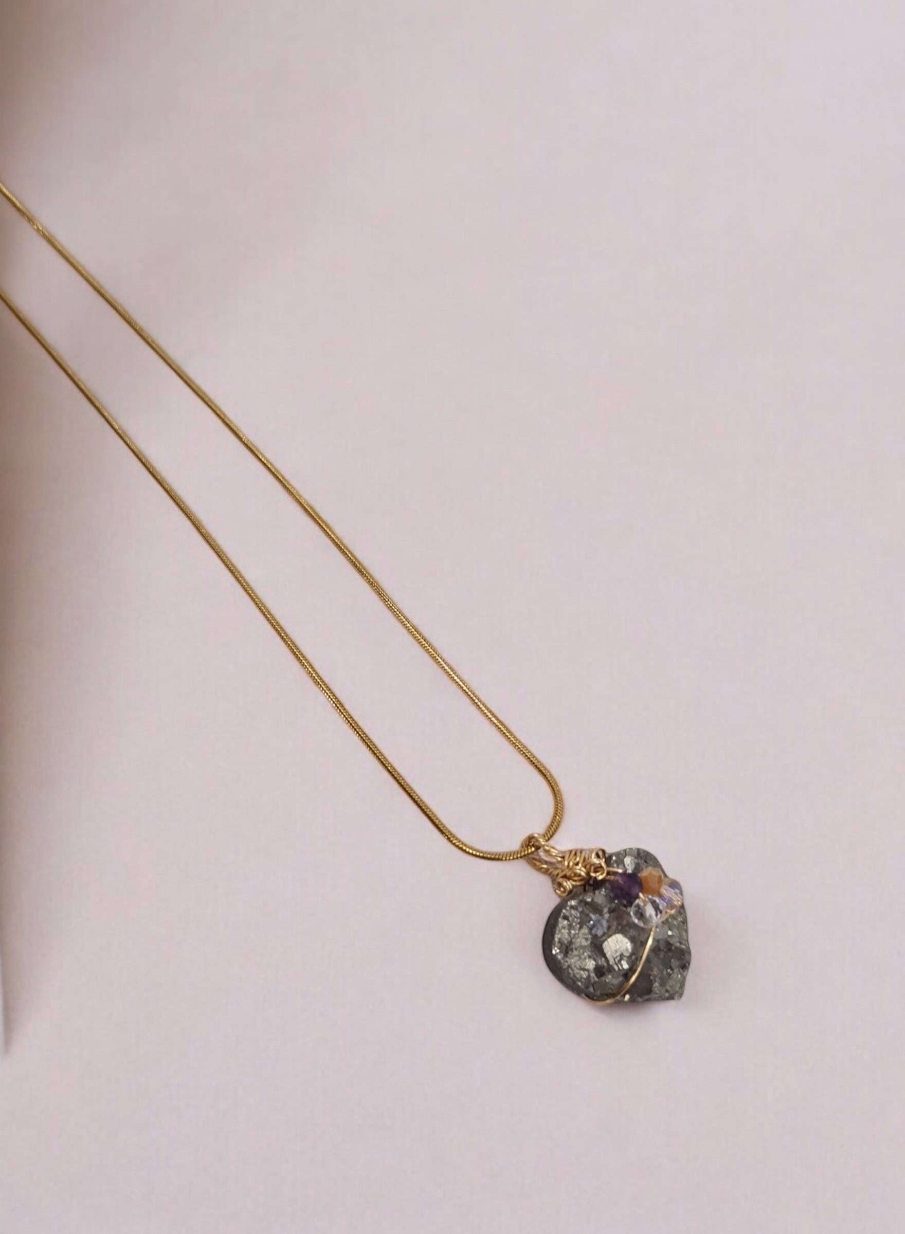 Collar de cobre de pirita en forma de corazón. Una pieza que brilla con la energía de la pirita. Hecho a mano.