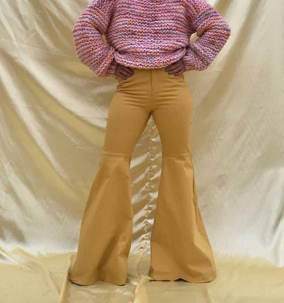 Pantalon de denim de algodón strech, acampanado y con tiro a la cintura.