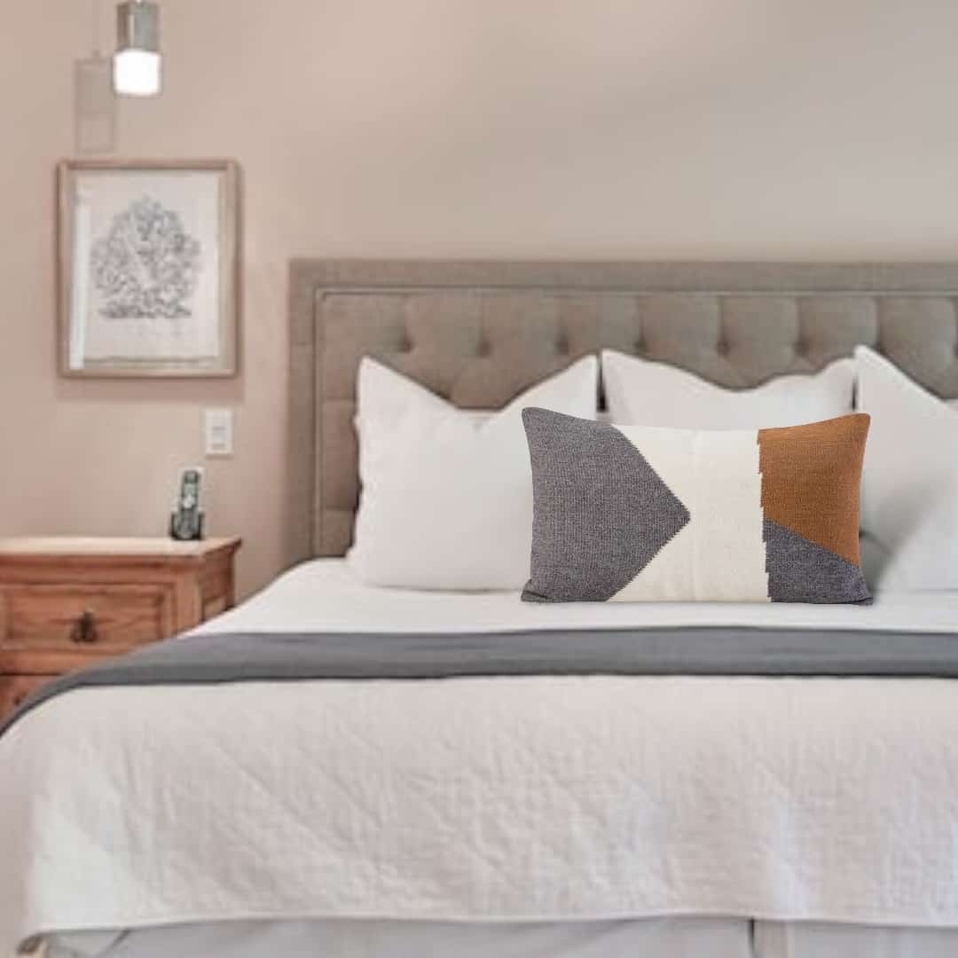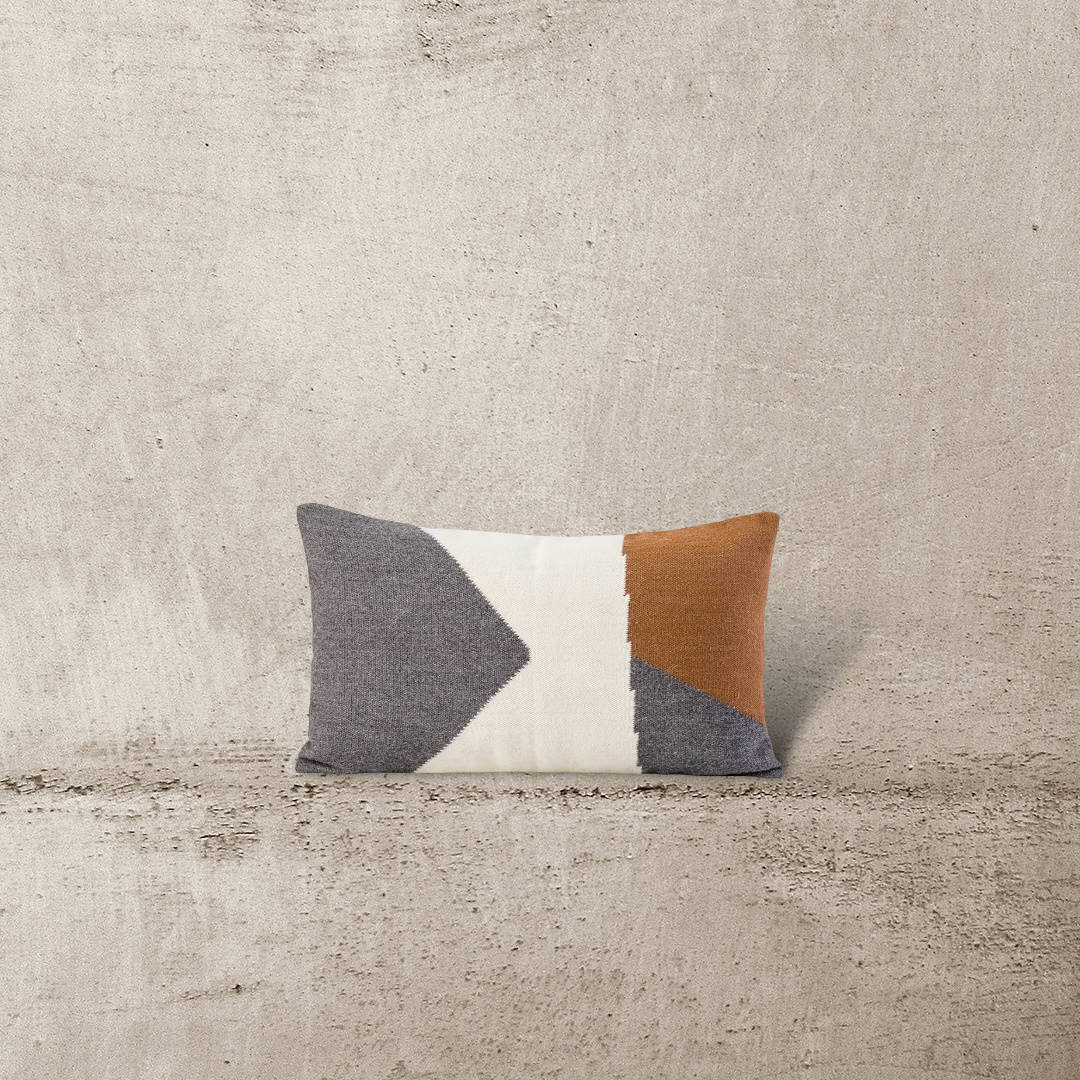 Cojín de fibra de oveja, hecho en telar a pedal por artesanos ayacuchanos. Teñido a mano con tintes naturales.
