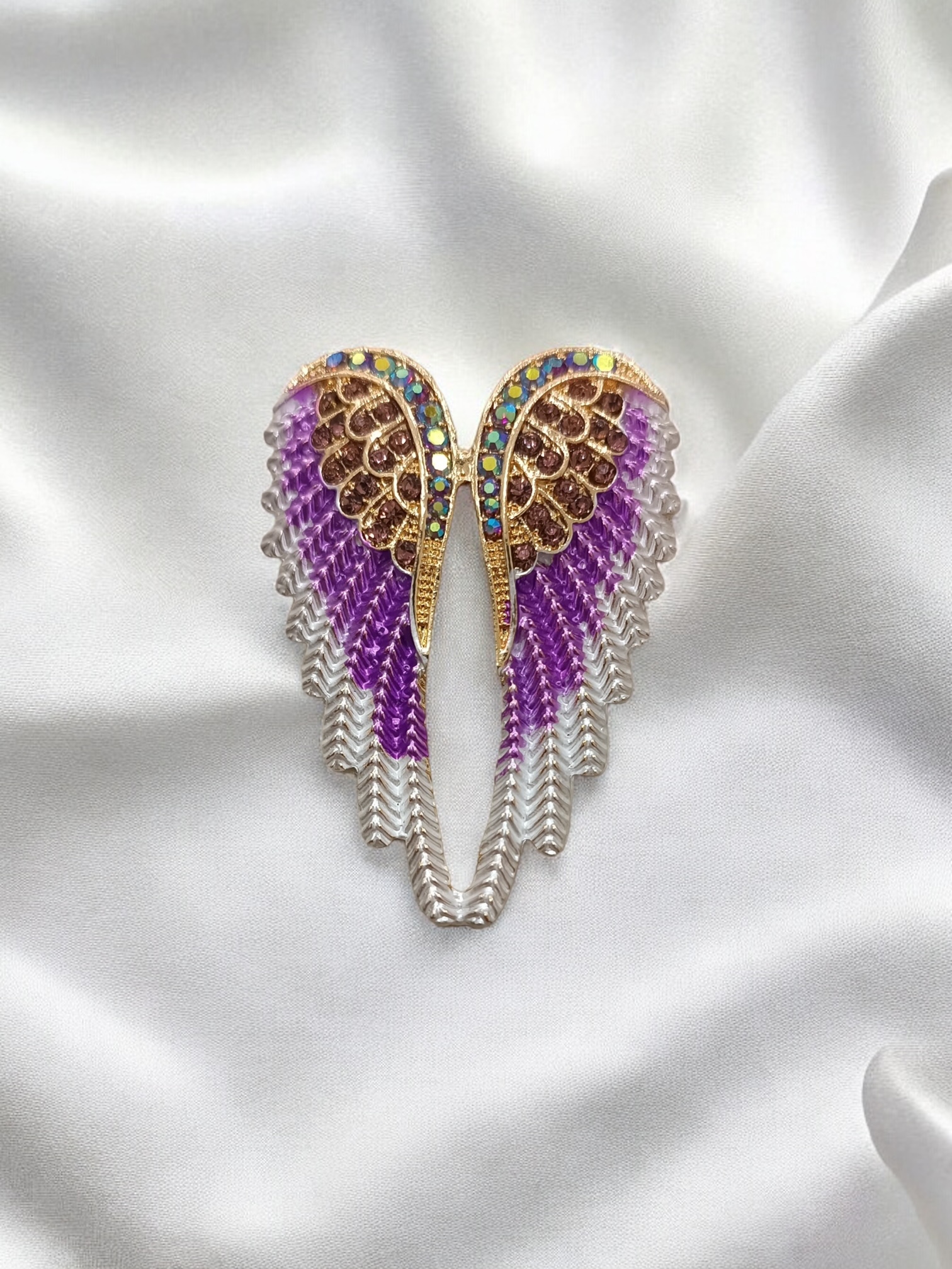 Broche en forma de alas de ángel, decorado con brillante pedrería en fantasía fina, puedes usarlo ya sea con vestido, abrigo, sweater, etc. es ideal par elevar tu look.