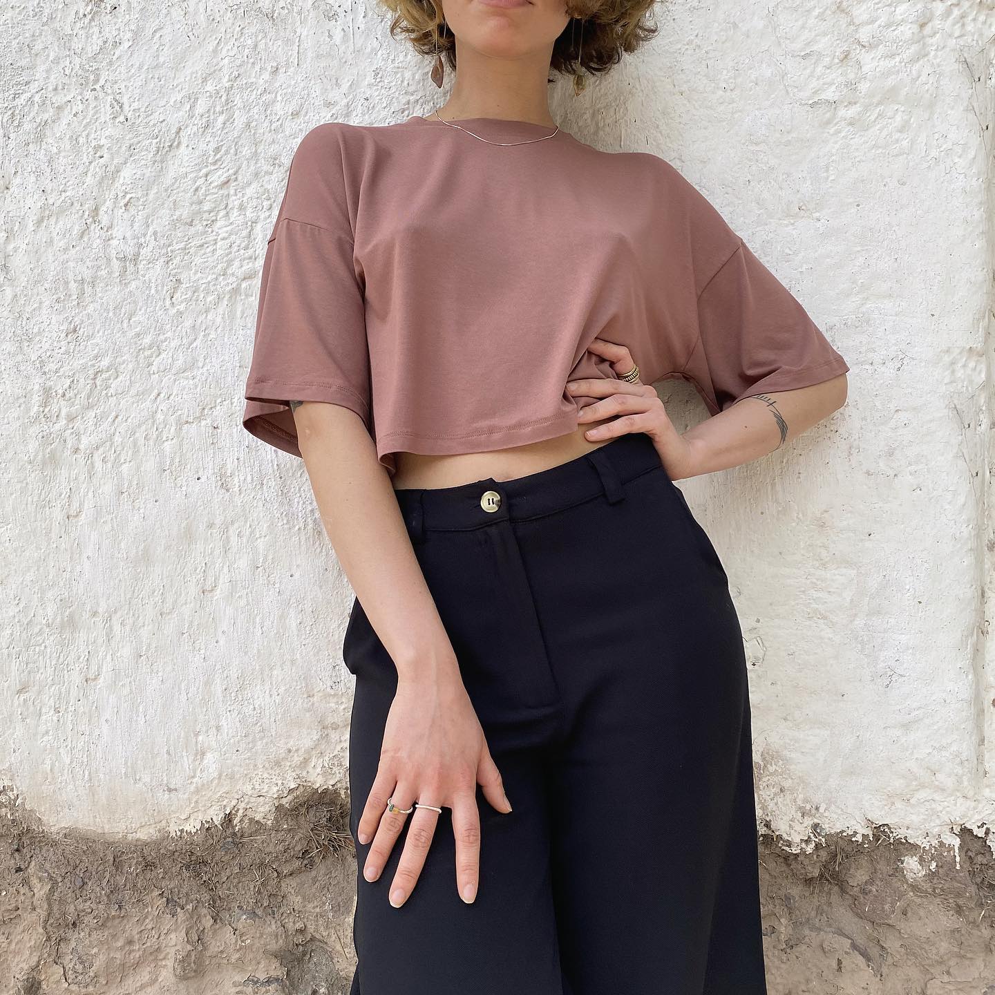 El Polo Crop está hecho en una mezcla de algodón y viscosa. Es súper suave, de corte holgado y mangas hasta por encima de los codos. Un básico sencillo y clásico que no debe faltar en tu fondo de armario.