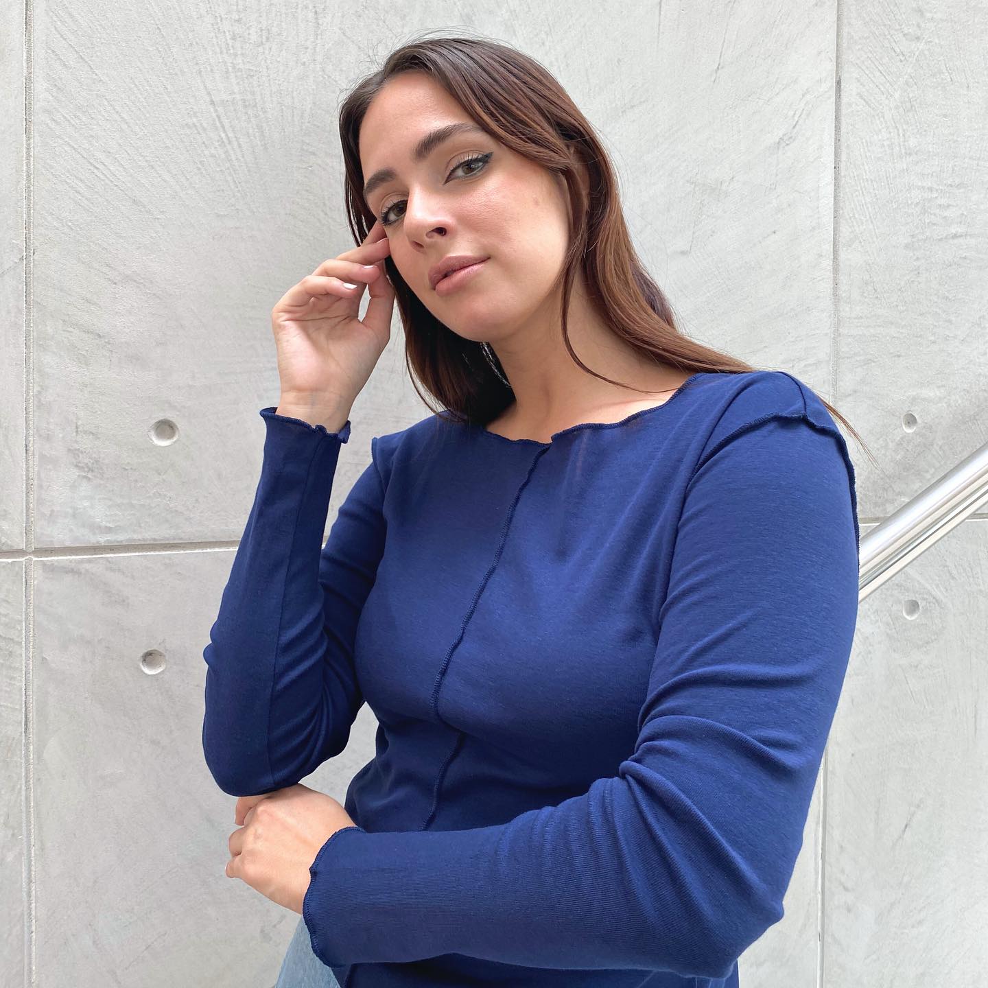 Top básico de manga larga. Con un toque de originalidad d en sus costuras externas.