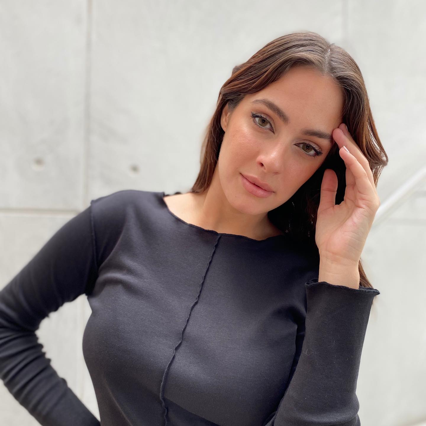 Top básico de manga larga. Con un toque de originalidad en sus costuras externas.