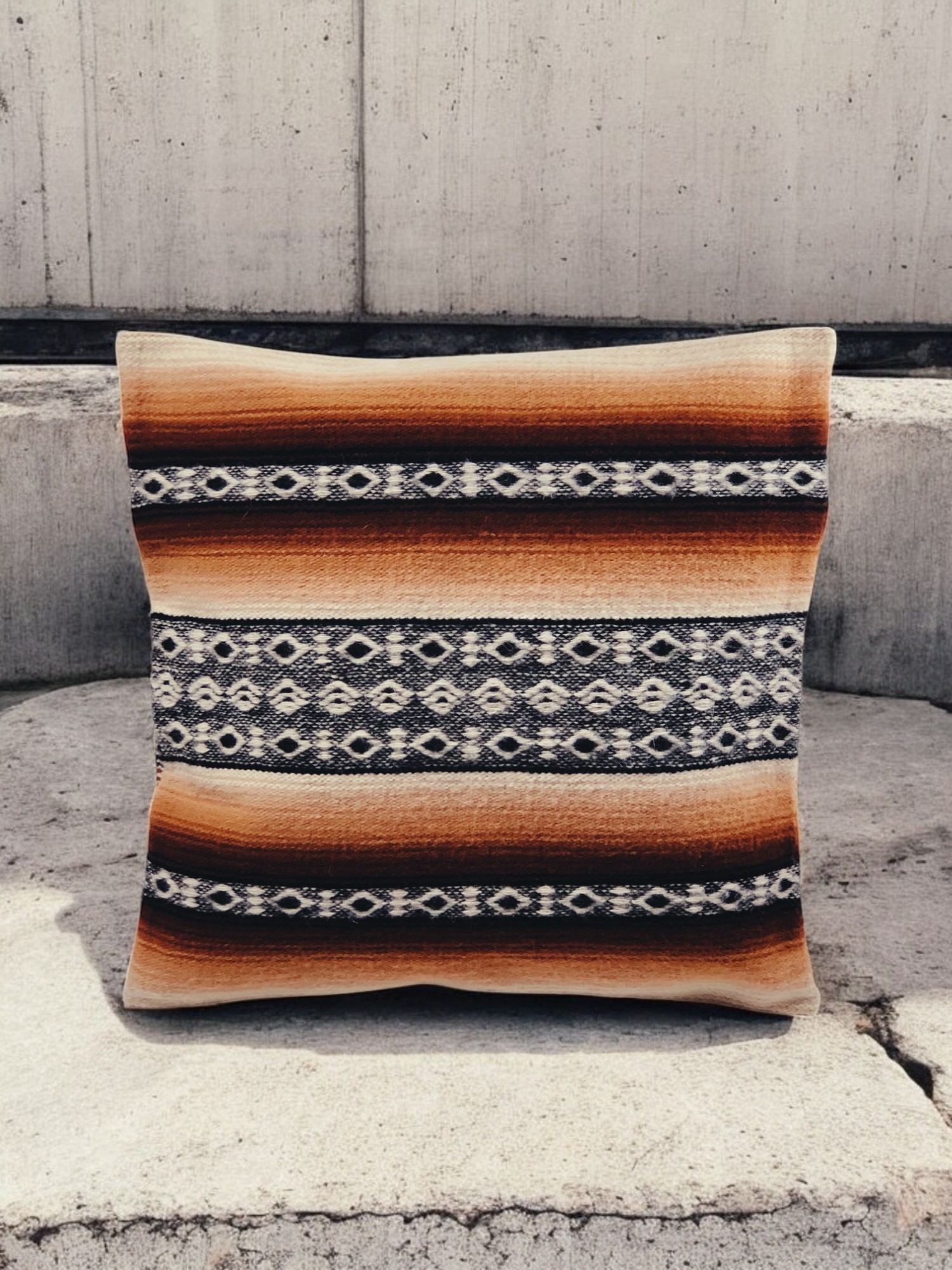 Forro de Cojín cuadrado 50×50 cm. Hecho con hilado de algodón y oveja, a través de la técnica ancestral del telar, por artesanos de Ayacucho – Perú. No incluye relleno.