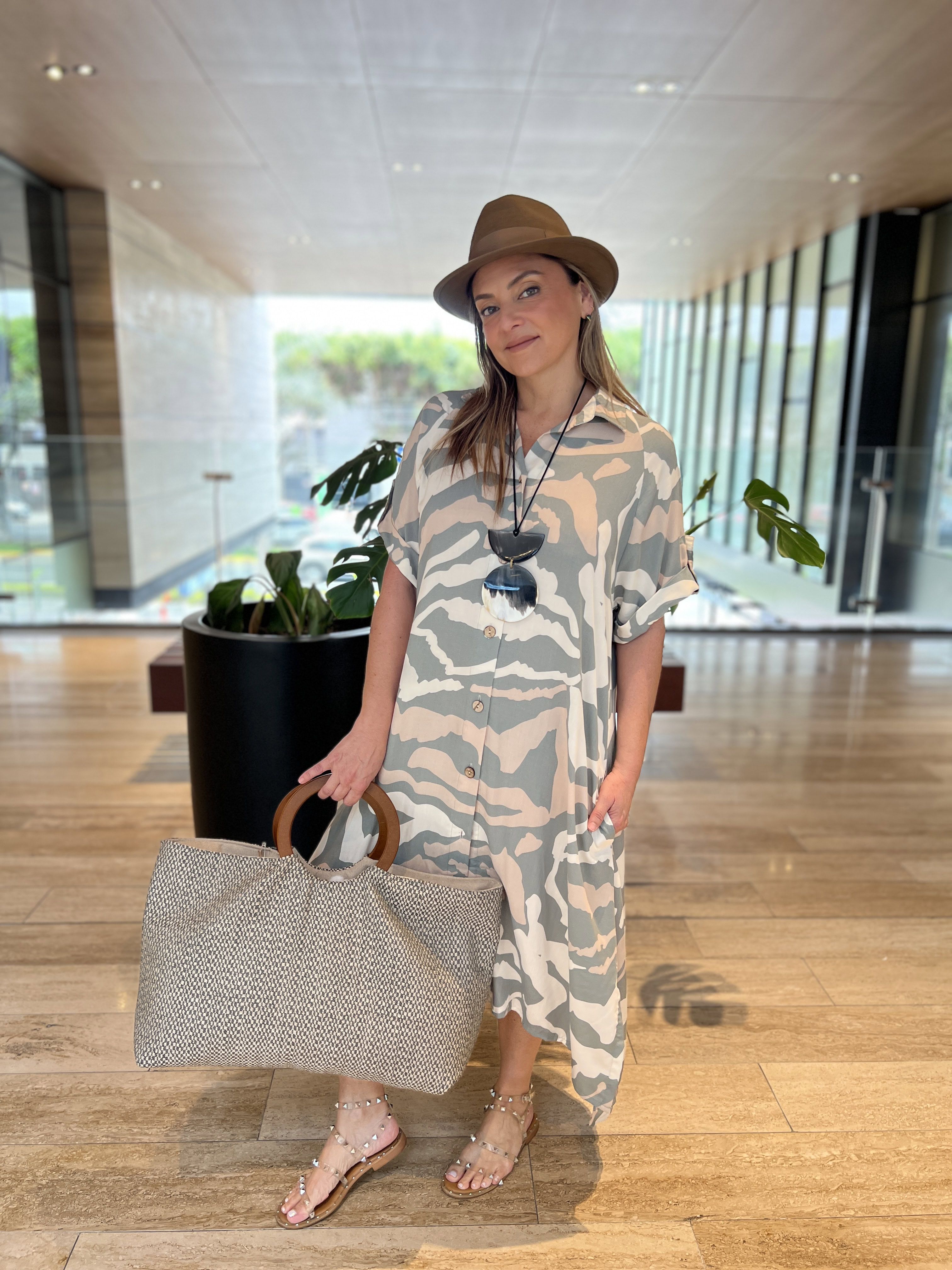 Vestido camisero en chalis de algodón, fresco y suave al tacto. Incorpora botones de coco que aportan un detalle natural y artesanal, además de bolsillos funcionales que brindan mayor comodidad. Ideal para el día a día, perfecto para un look casual y femenino.