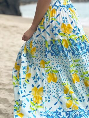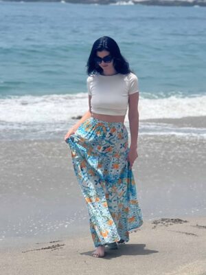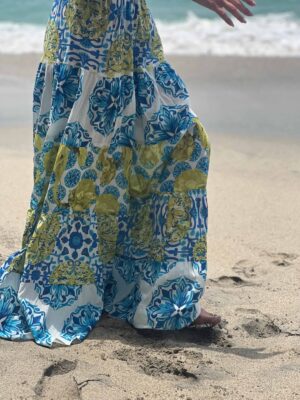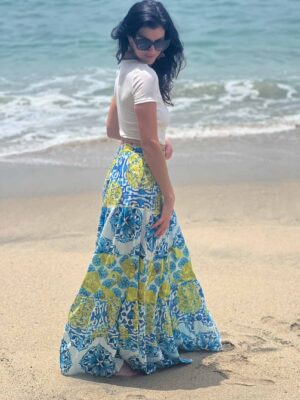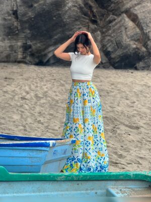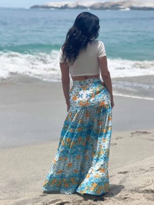 Falda de lino súper cómoda y fresca. Tiene elástico en la parte posterior de la cintura por lo que se adapta a las tallas S, M y L.