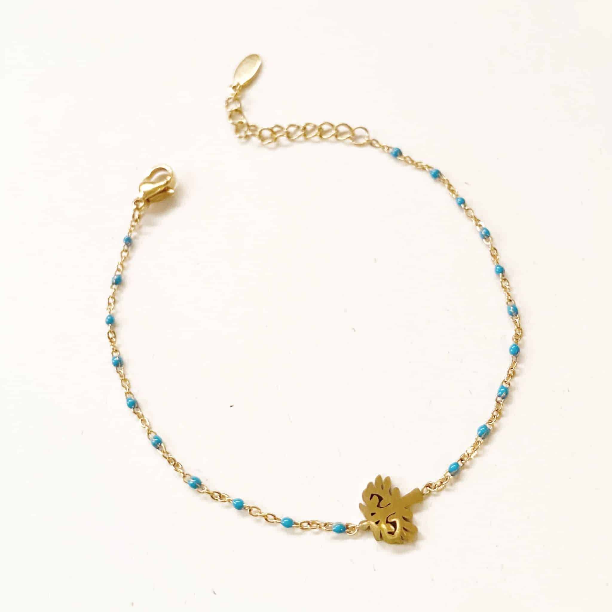 Pulsera de acero y cuentas con dije de árbol de la vida, símbolo de crecimiento personal, superación y progreso.
