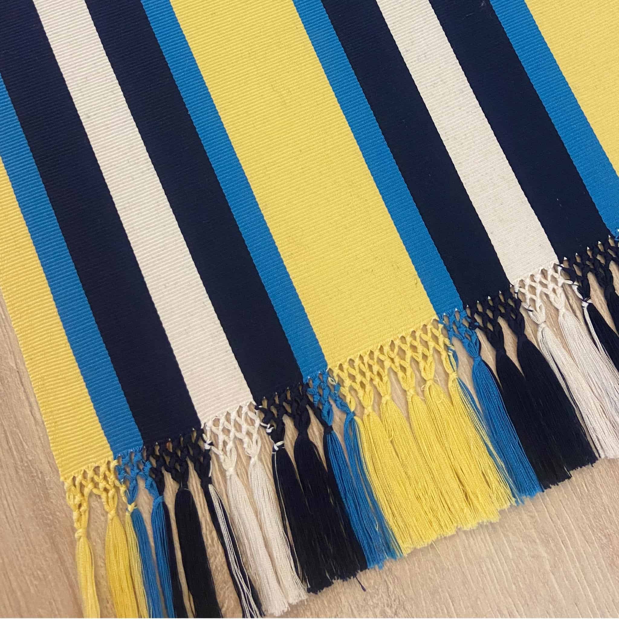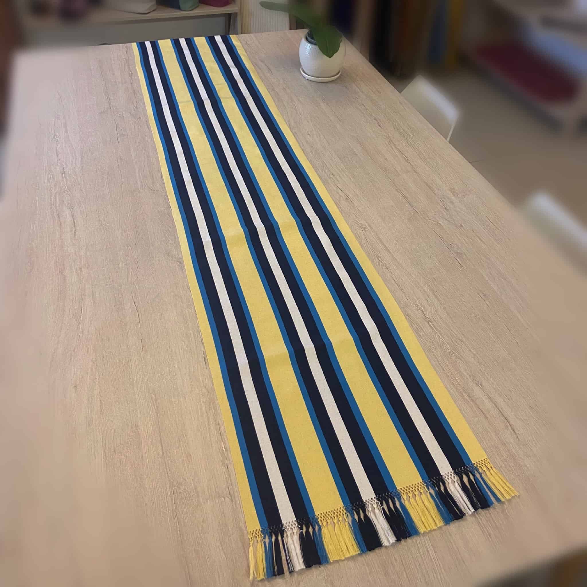 Camino de mesa de algodón pima teñido en tintes naturales. Tejida a mano por artesanos Huancavelicanos.
