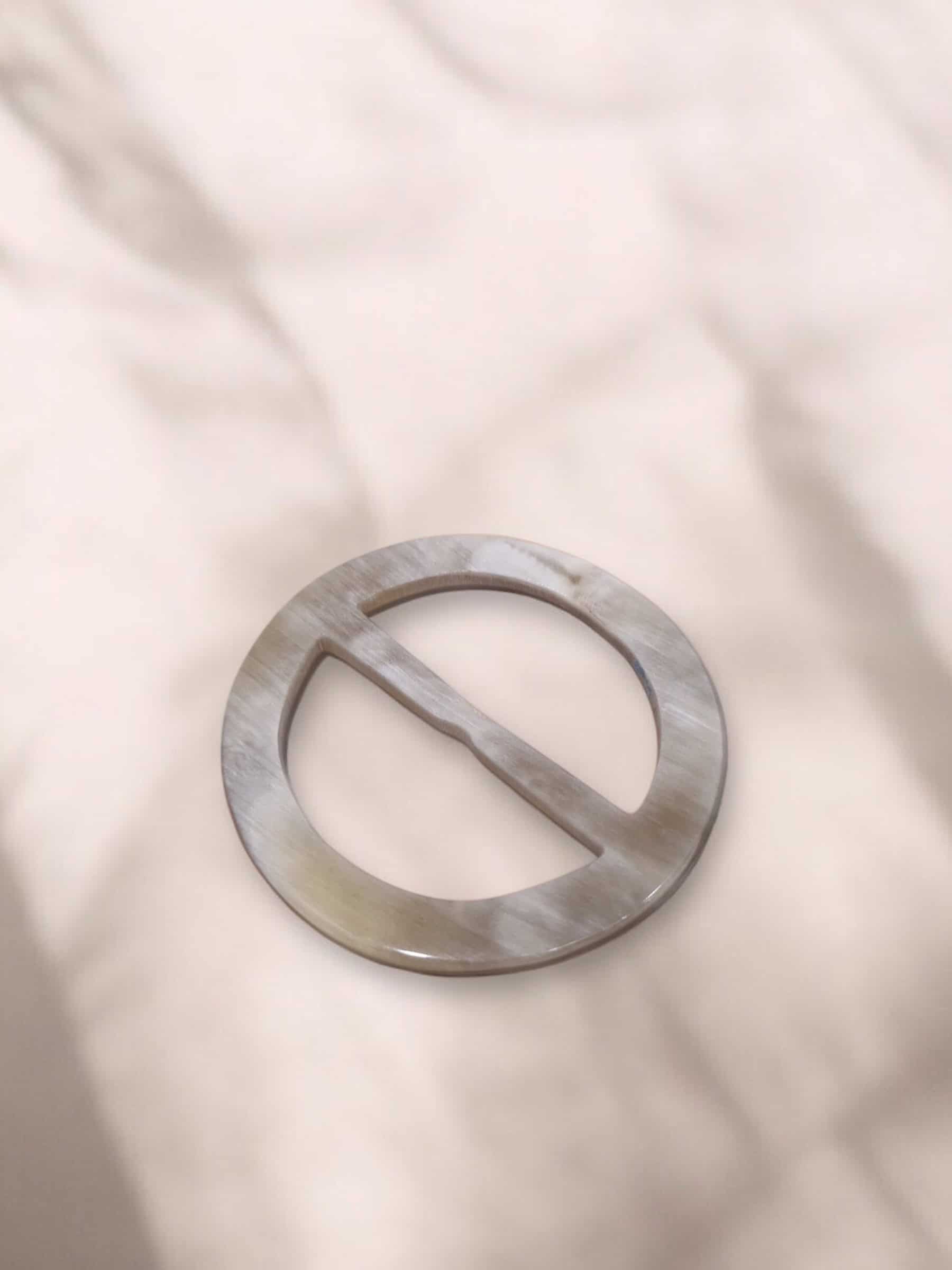 Aro para el pareo hecho a mano en cacho de toro reciclado. La belleza del material y el trabajo fino artesanal dan como resultado una pieza única y sostenible.