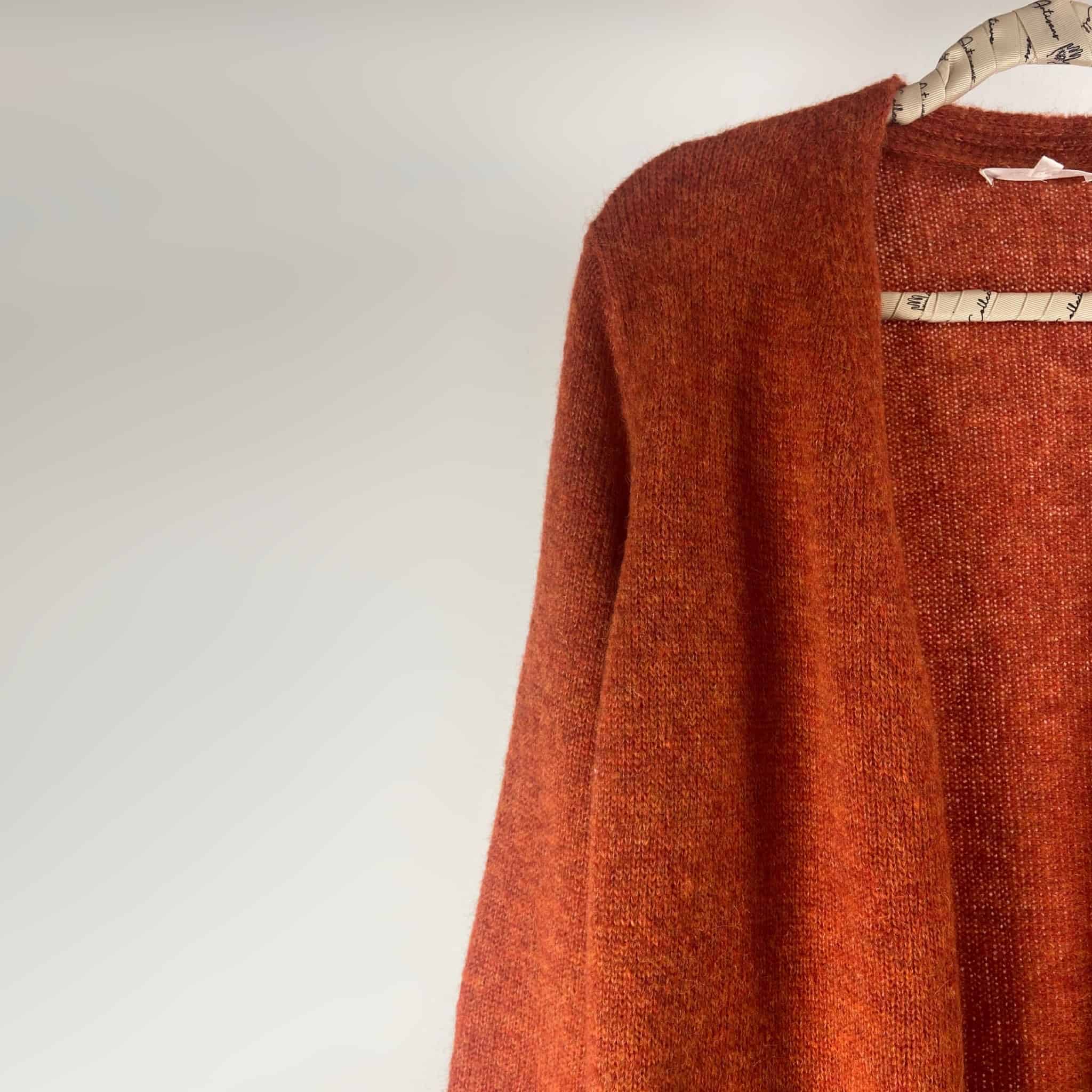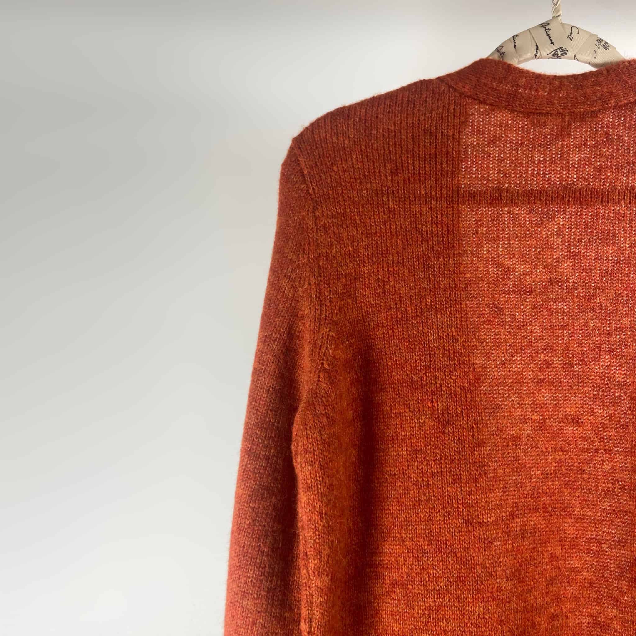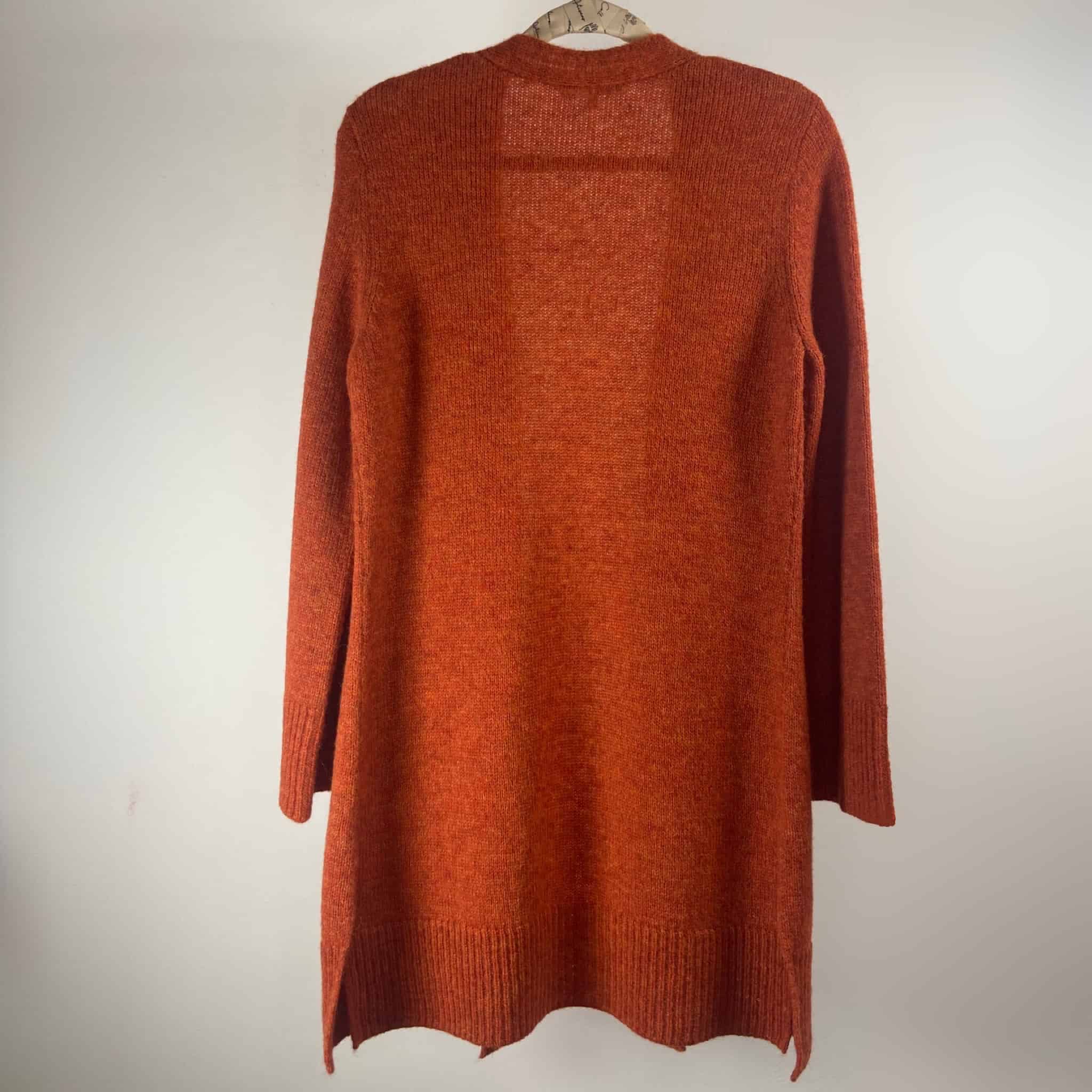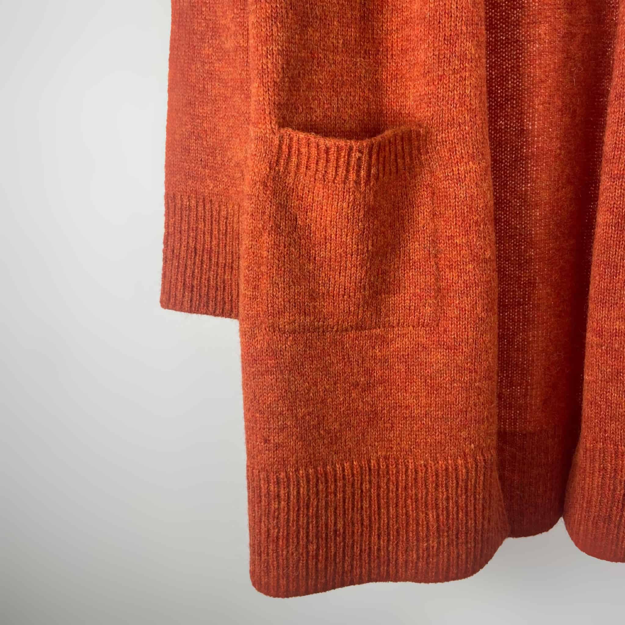 Cardigan largo de alpaca, tejida a máquina artesanal.