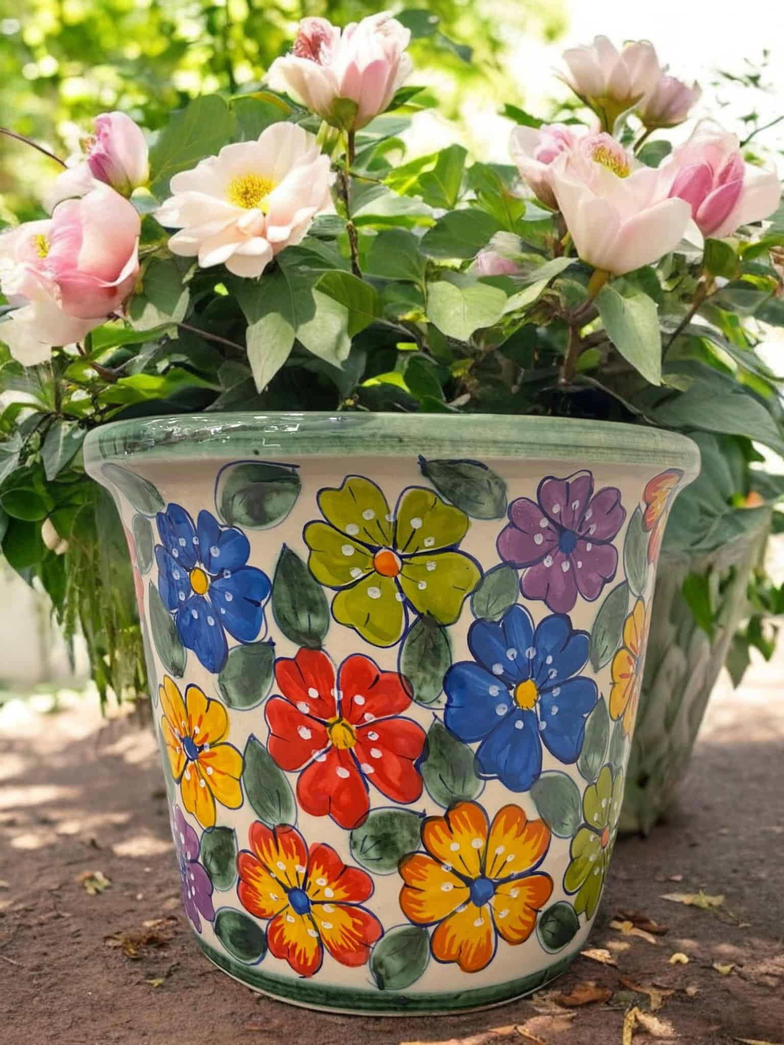 Balde de cerámica hecho y pintado a mano por artesanos limeños. Cada pieza es única por su elaboración artesanal.