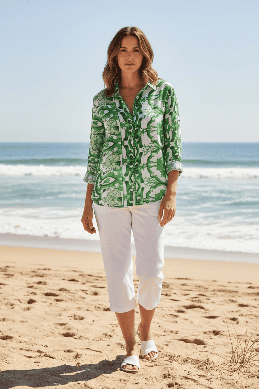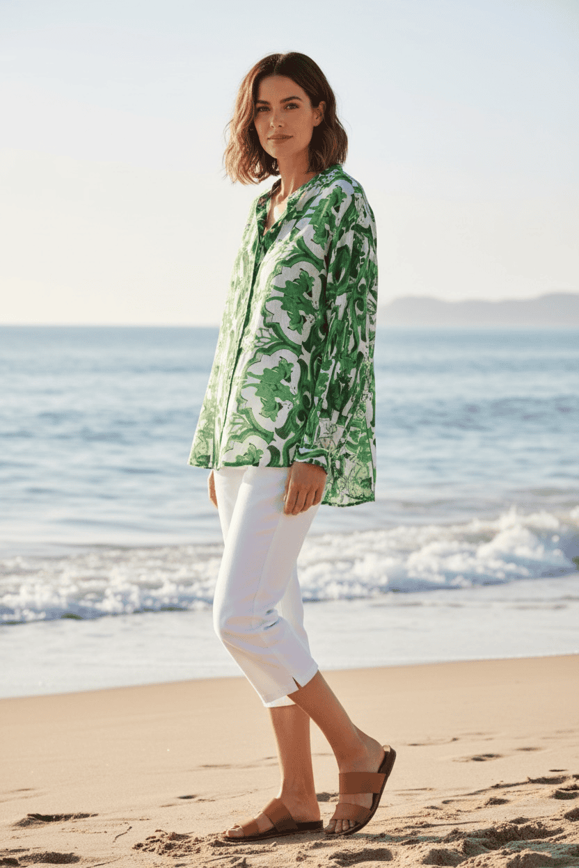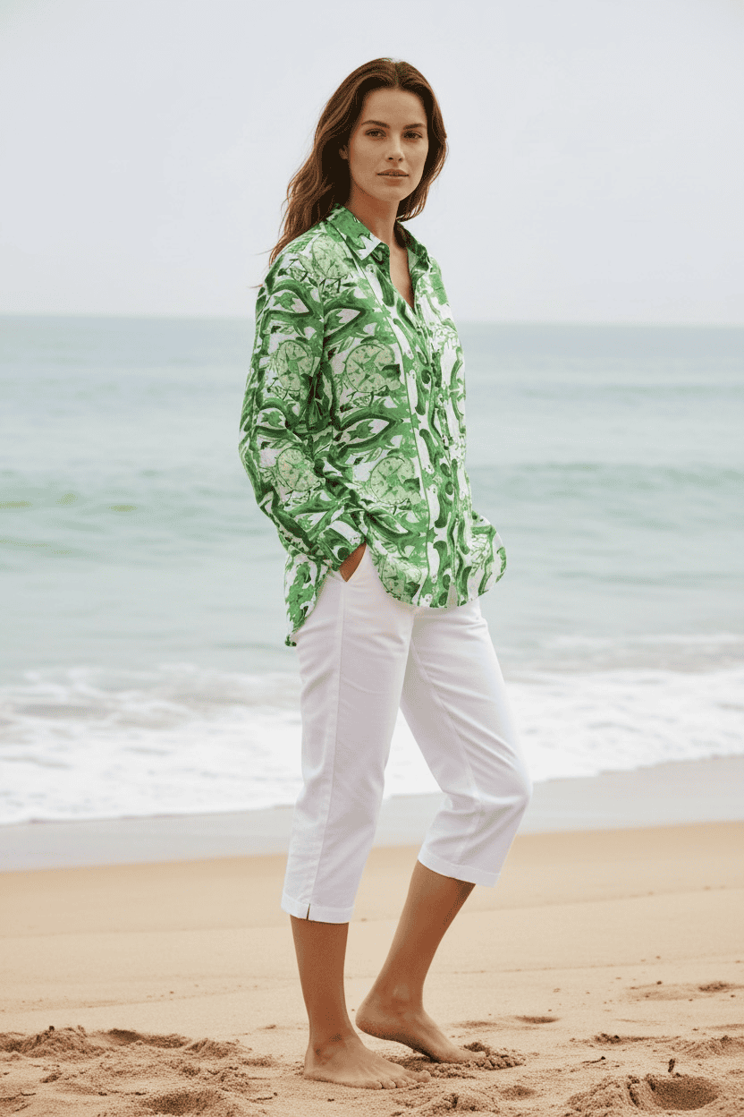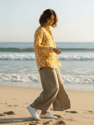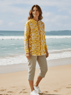 Blusa de manga larga con cuello neru, confeccionada en una tela ligera y cómoda. Presenta un estampado único y delicados botones frontales que aportan un toque único.