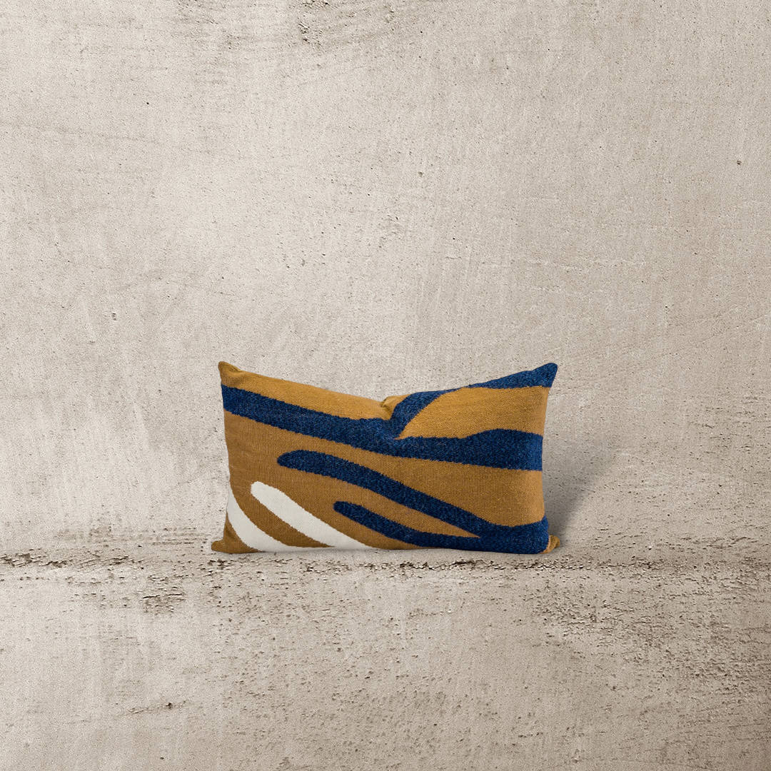 Cojín de fibra de oveja, hecho en telar a pedal por artesanos ayacuchanos. Teñido a mano con tintes naturales.