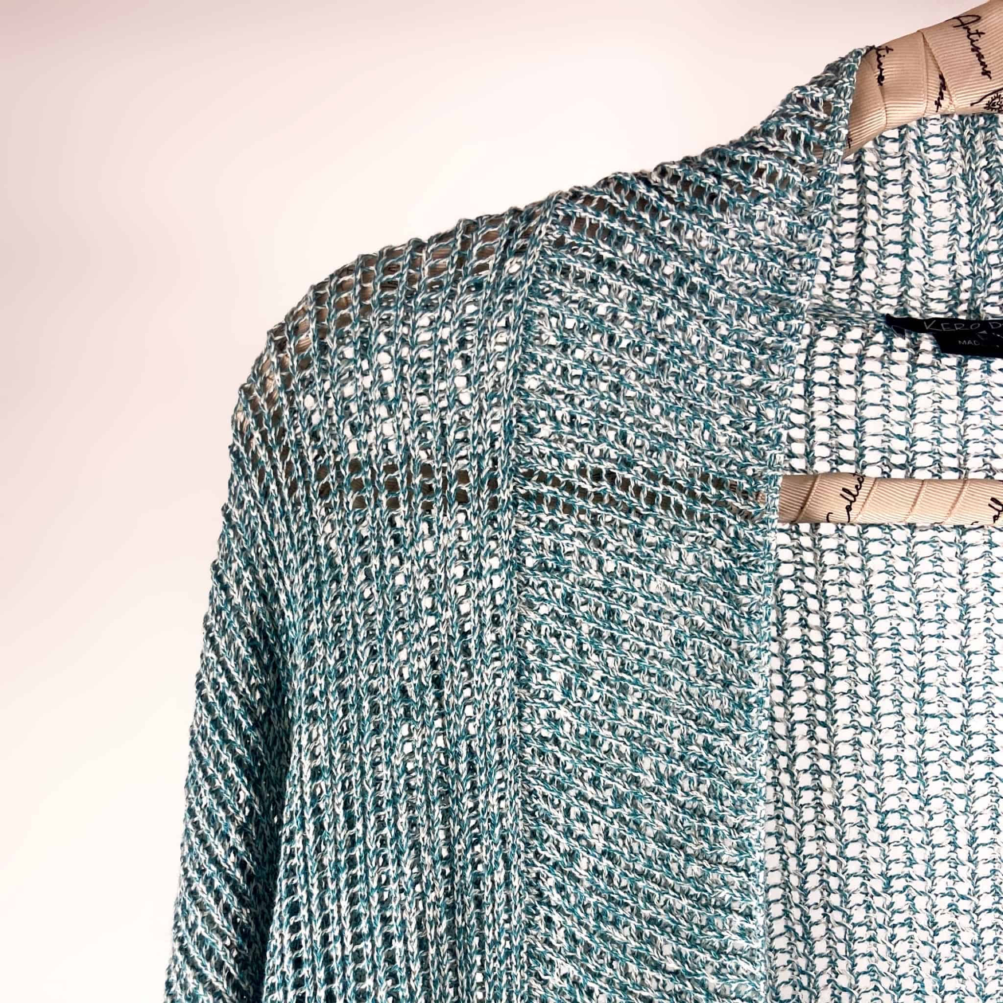 Cardigan de algodón orgánico, teñida manualmente por mujeres locales con tintes naturales.