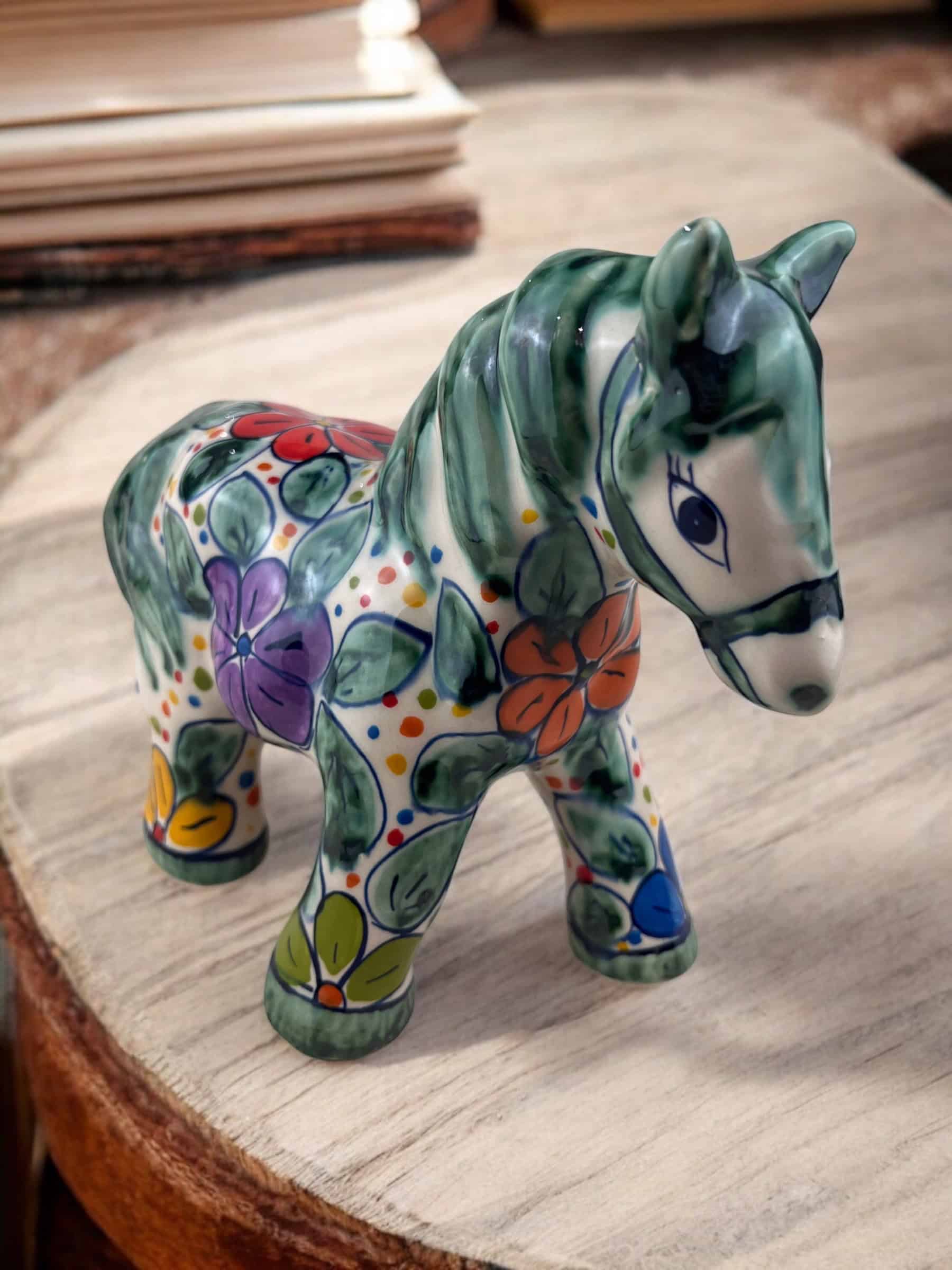 Caballo hecho de cámerica, hecha y pintado a mano. Cada pieza es única por su elaboración artesanal.