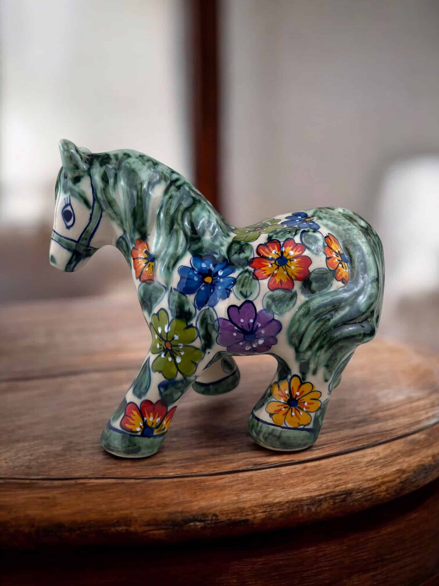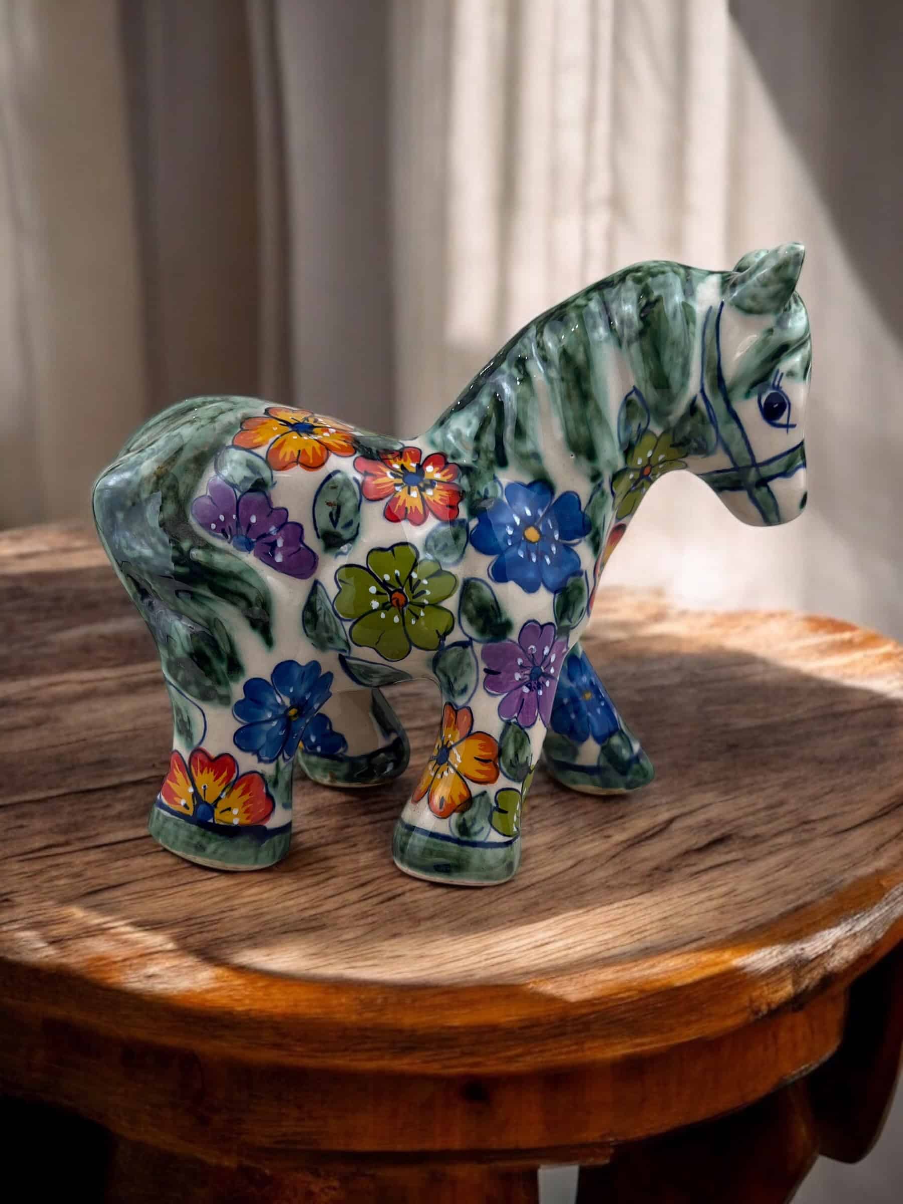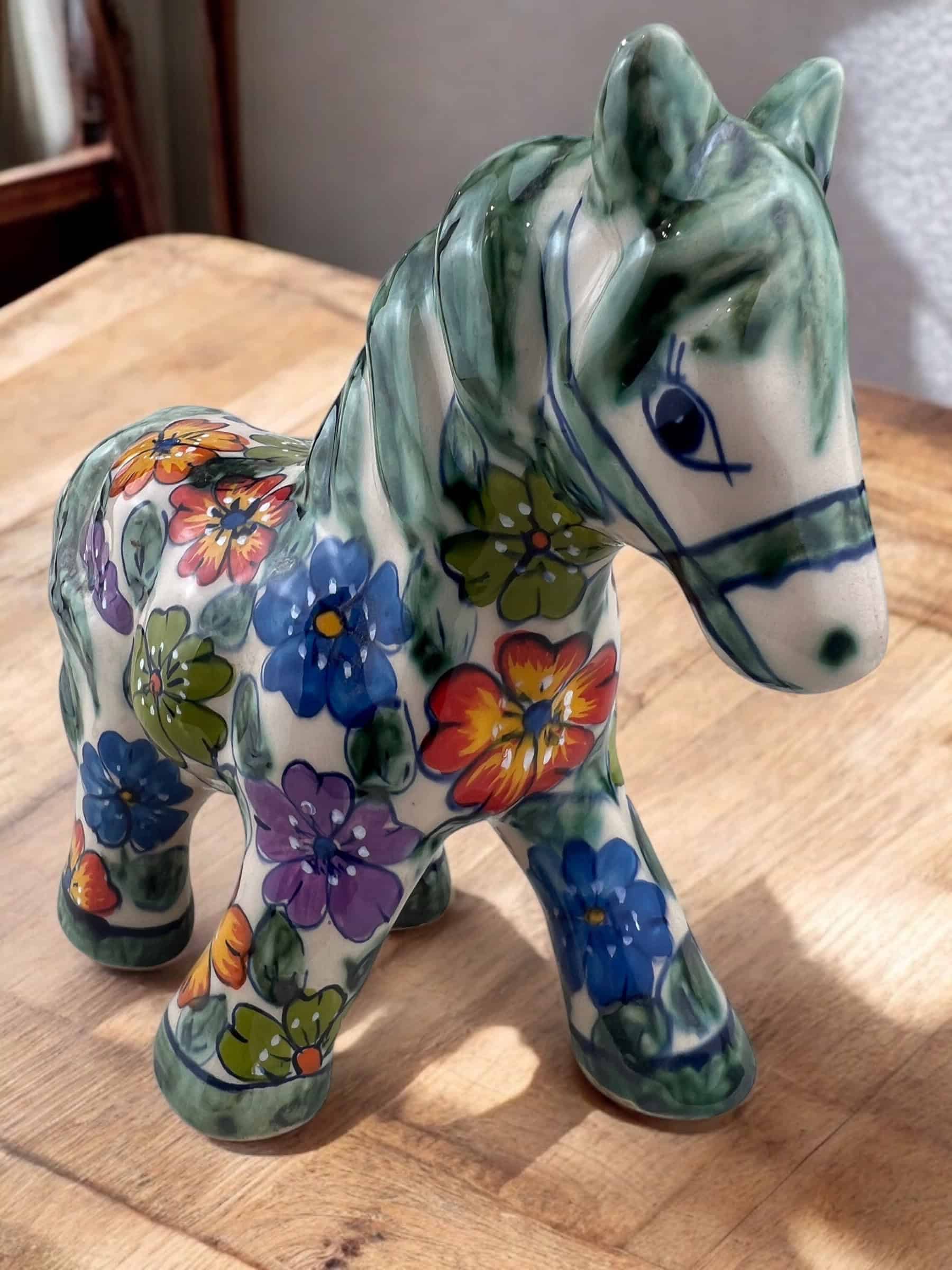 Caballo hecho de cámerica, hecha y pintado a mano. Cada pieza es única por su elaboración artesanal.