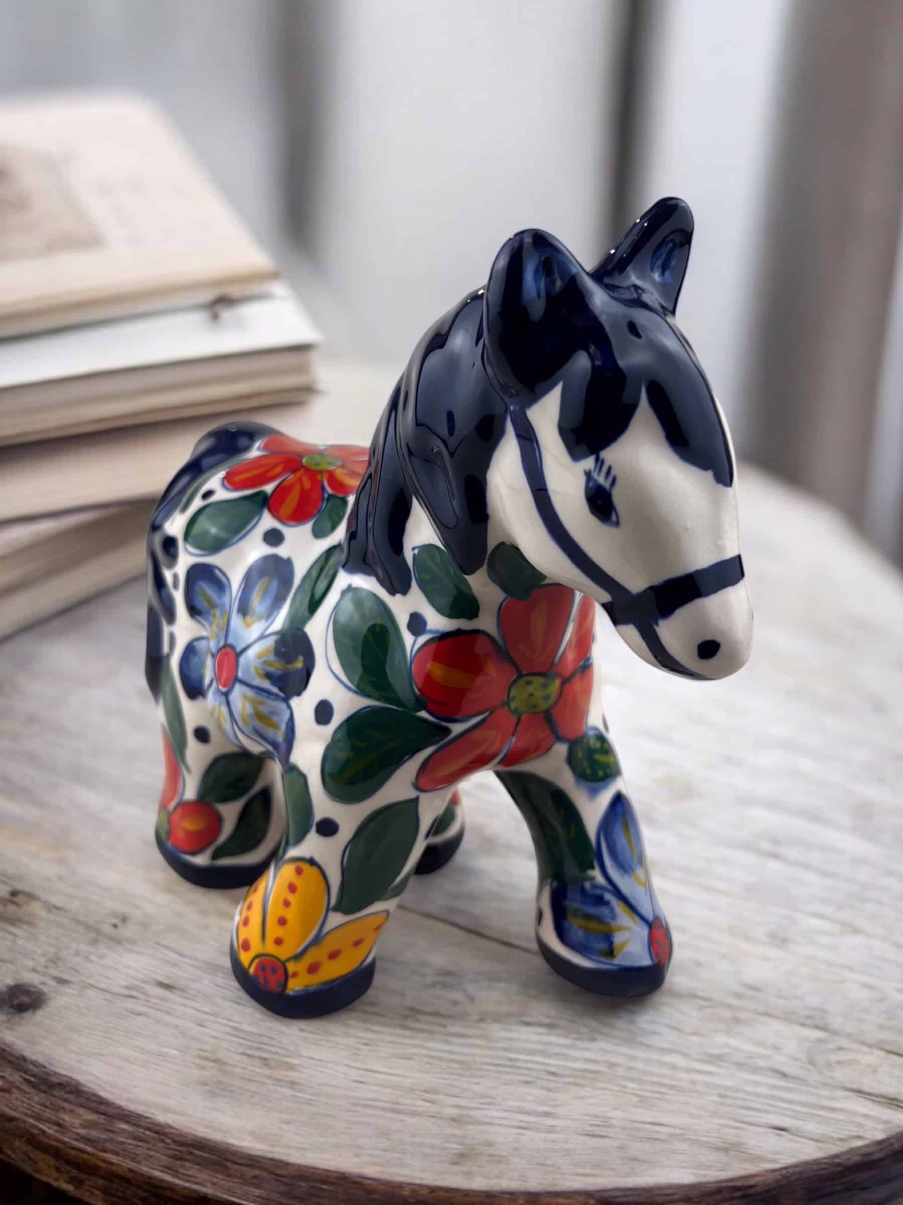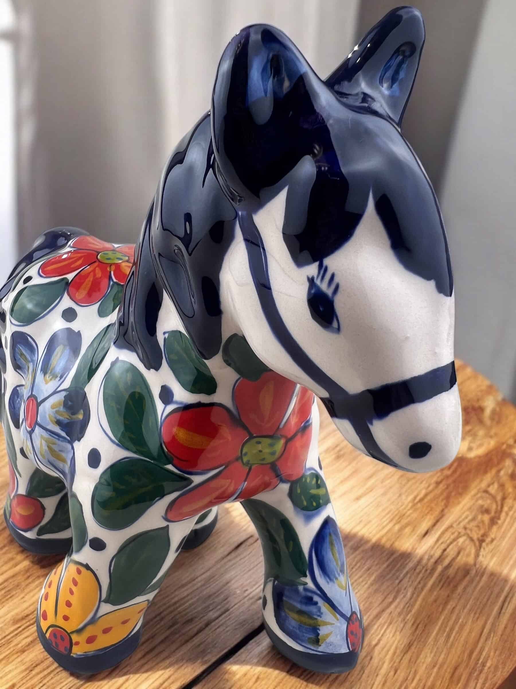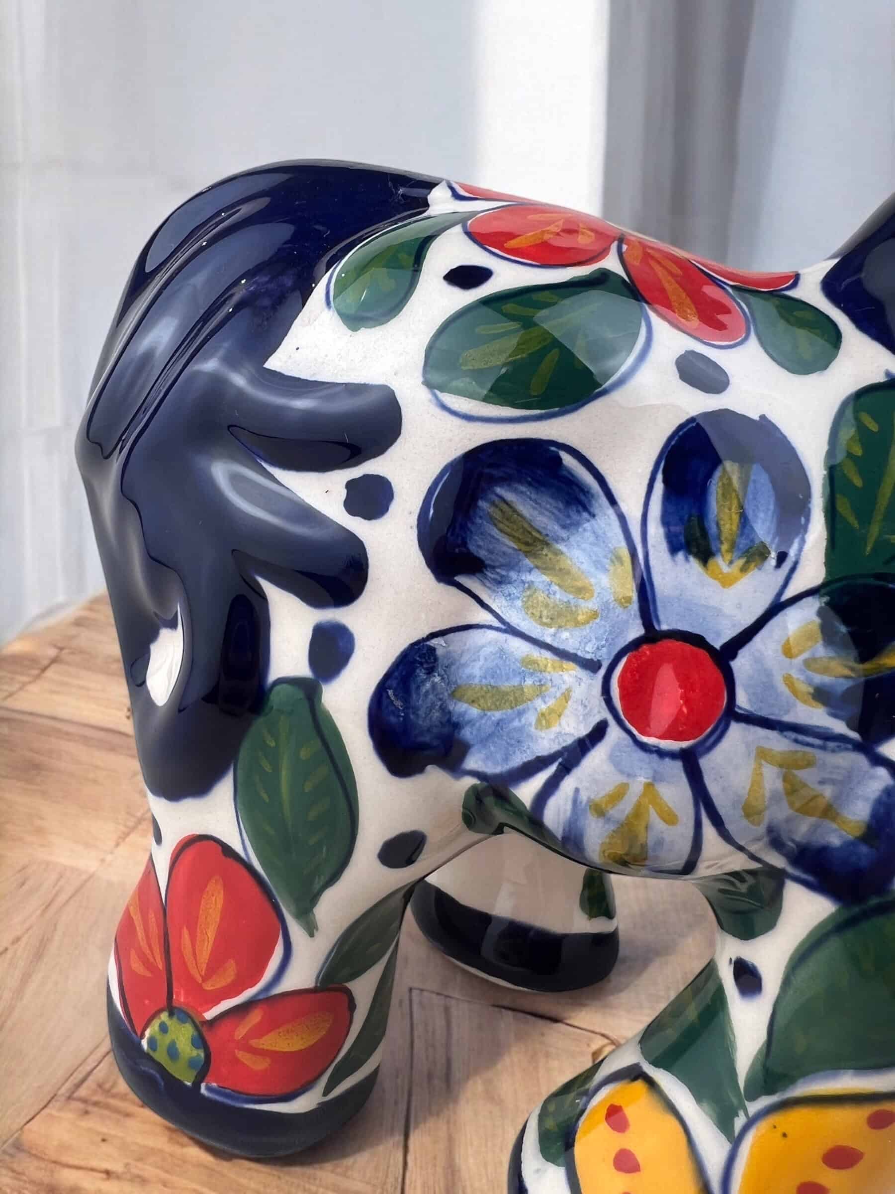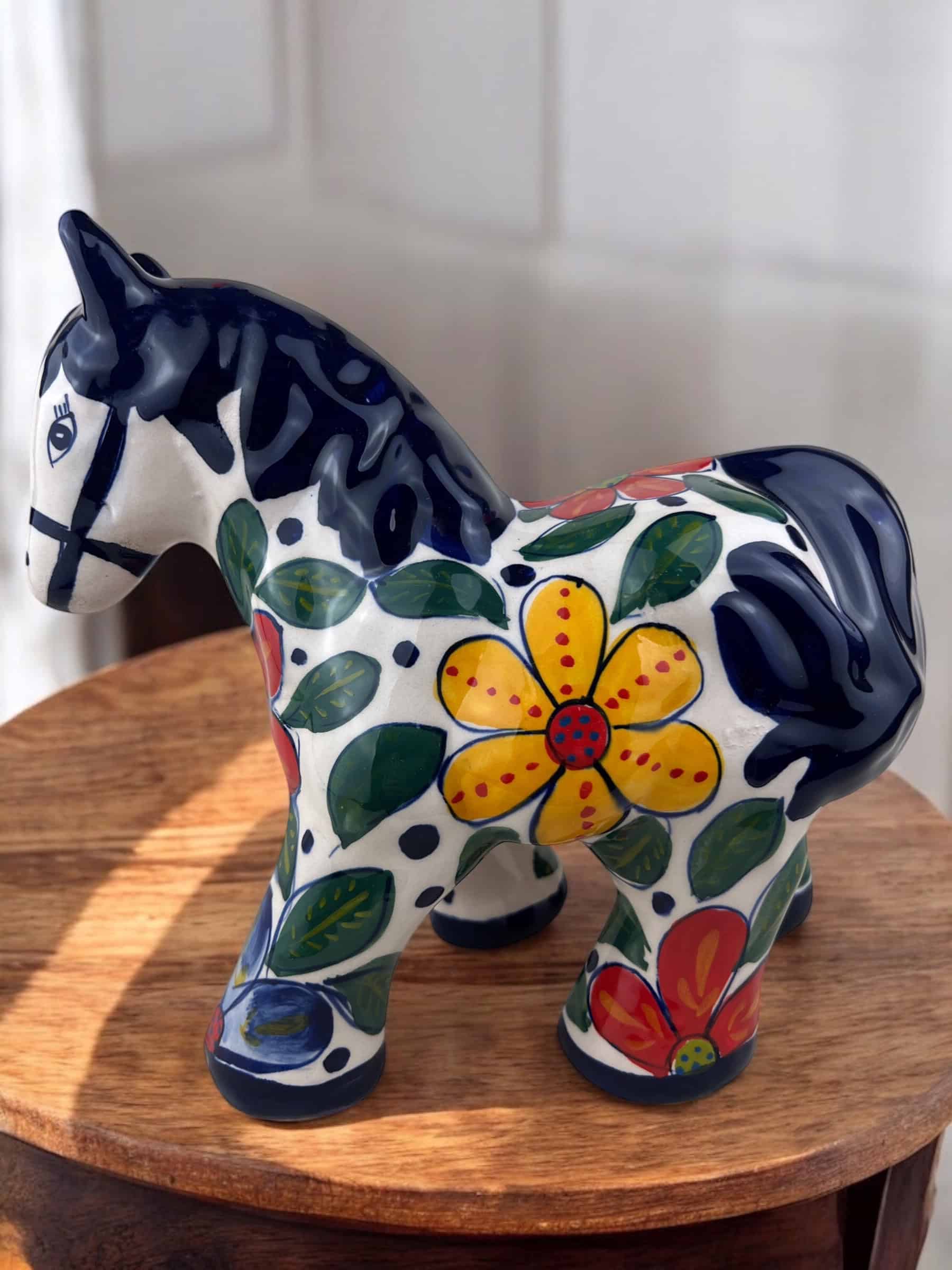 Caballito de cerámica hecho y pintado a mano por artesanos limeños. Cada pieza es única por su elaboración artesanal.