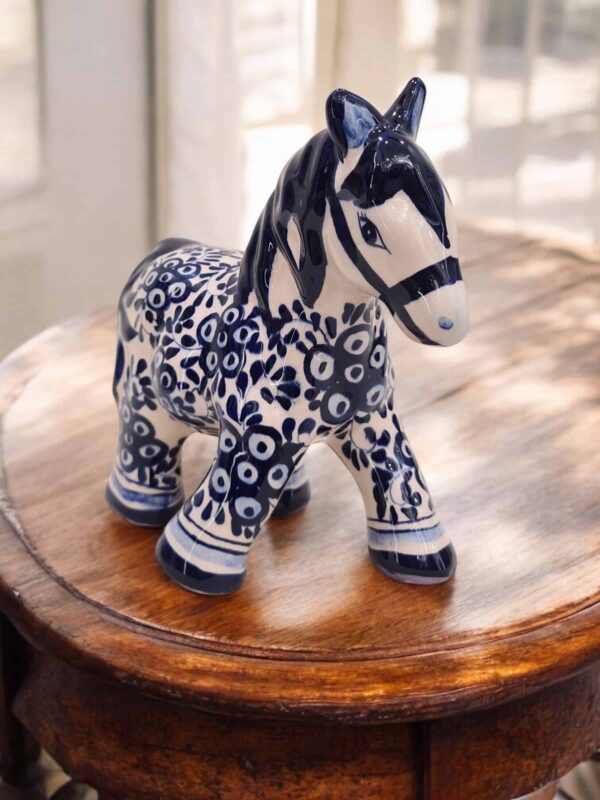 Caballo hecho de cerámica, hecha y pintado a mano. Cada pieza es única por su elaboración artesanal.