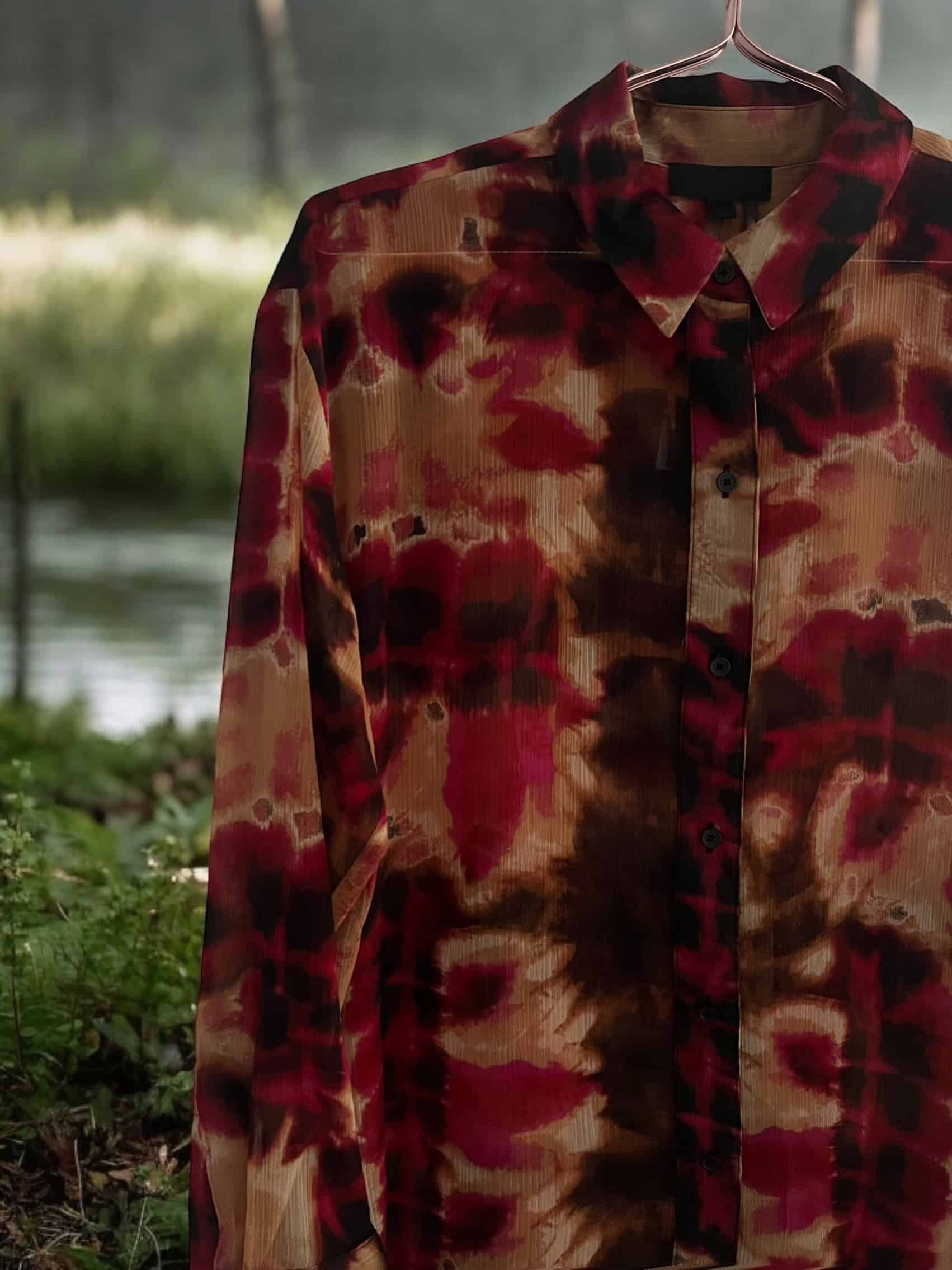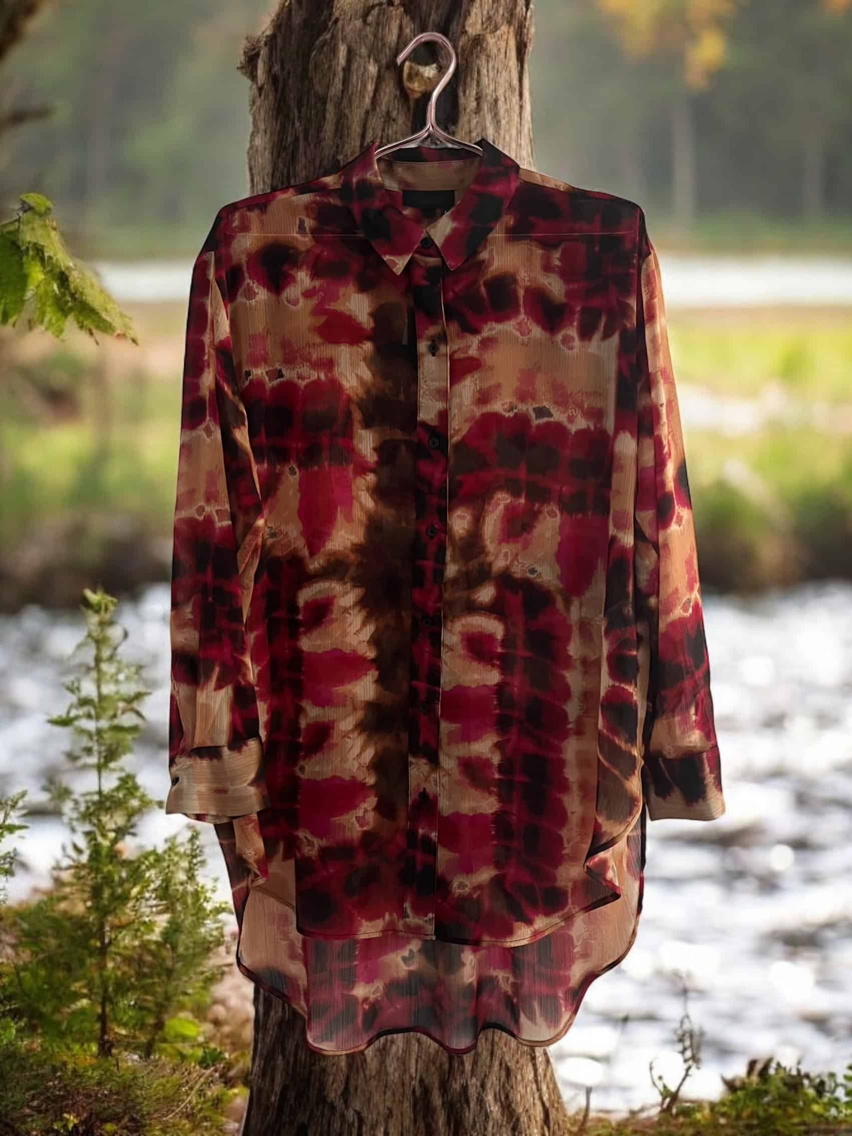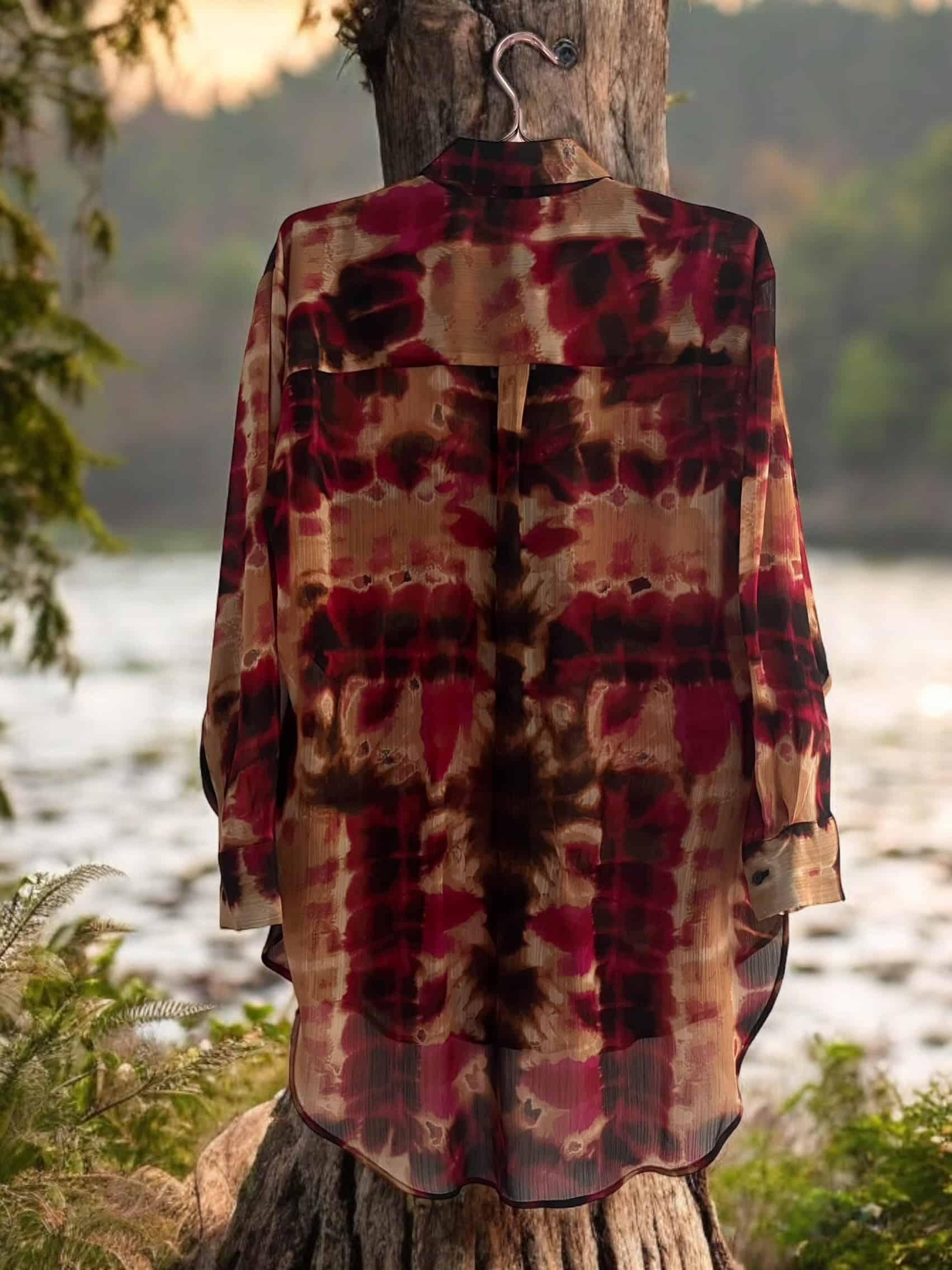 Blusa de manga larga, transparente con diseño batik. Súper liviana cómoda y elegante.