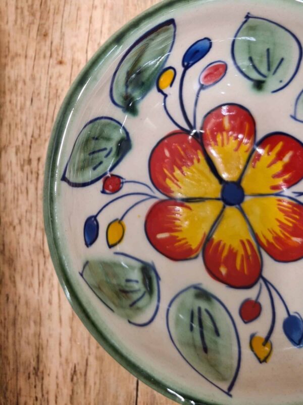 Mini bowl de cerámica, hecha y pintada a mano por artesanos limeños. Cada pieza es única por su elaboración artesanal. Puedes usarla como platito ara poner un dulcecito para tus lonches con amigas, o para poner la bolsita de infusiones, o para poner tus joyitas en la mesa de noche o tus llaves.