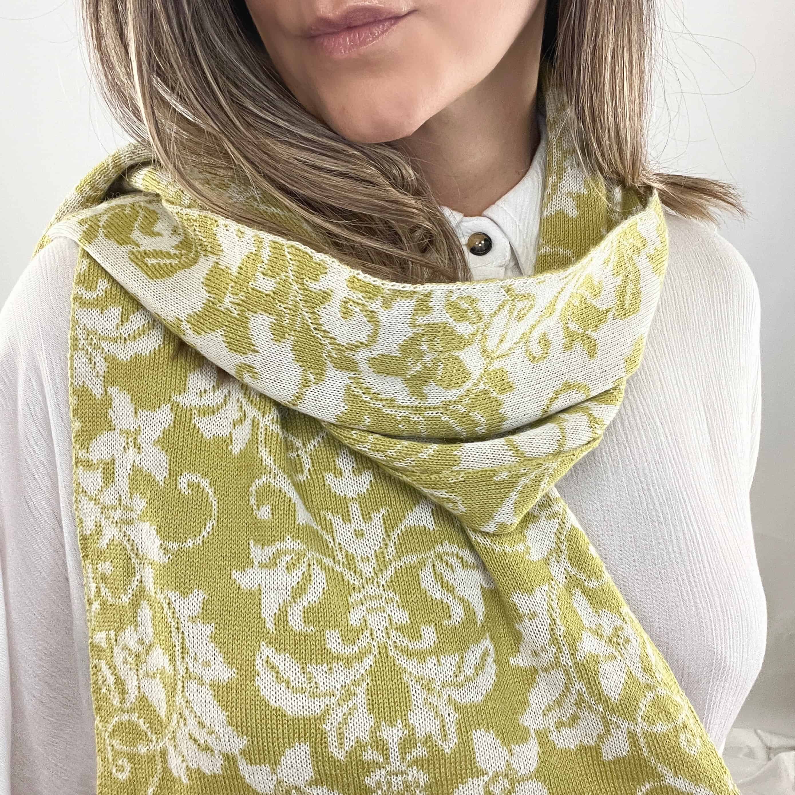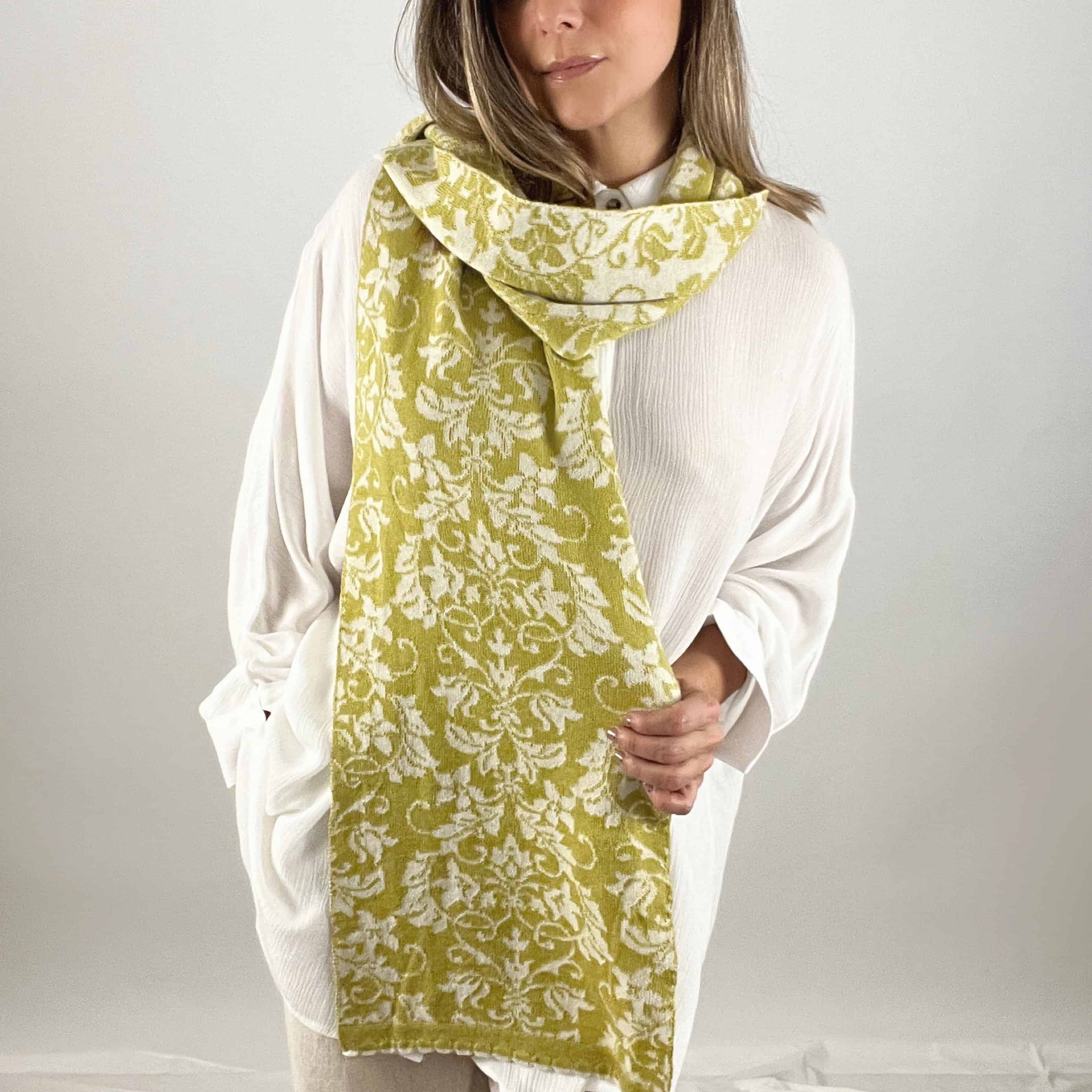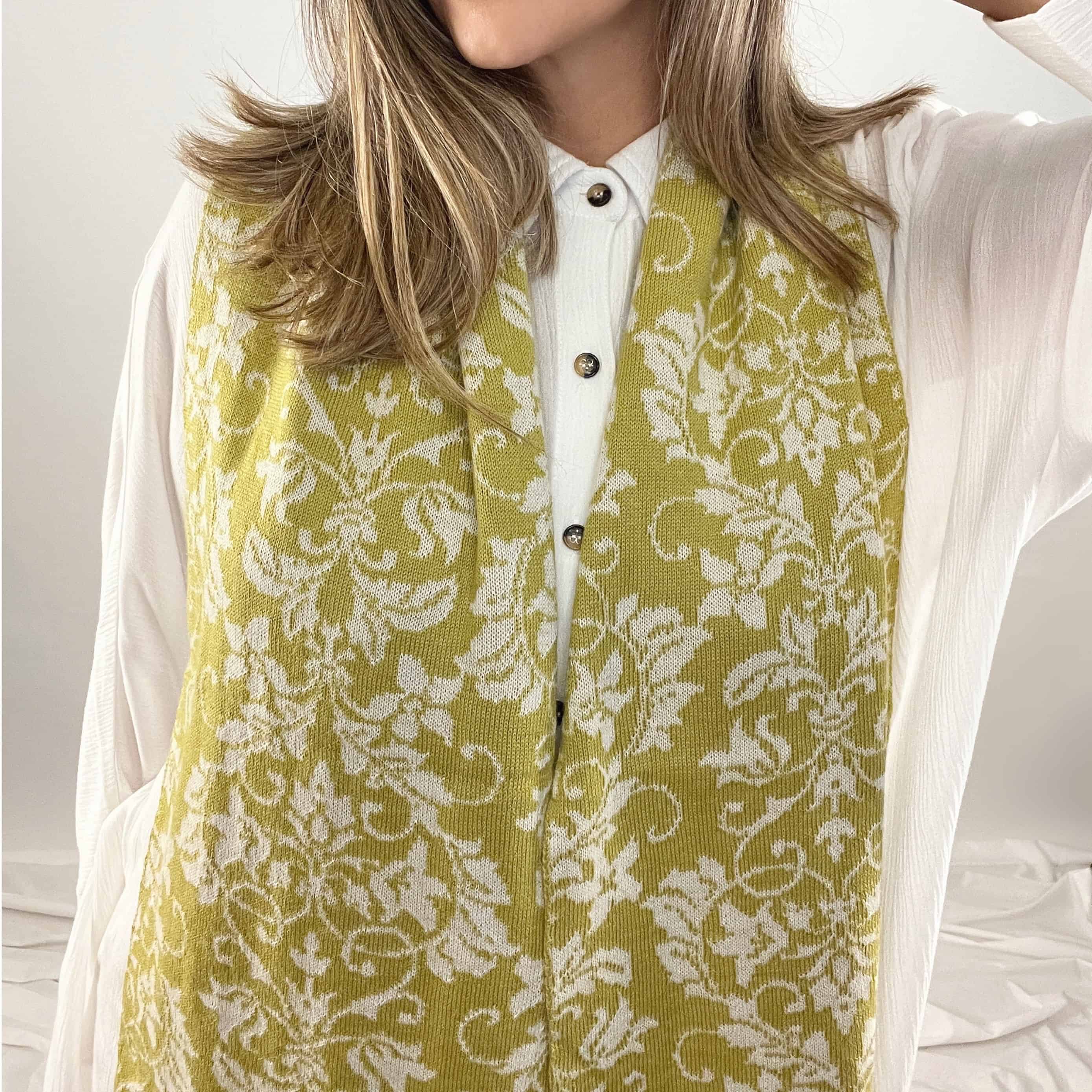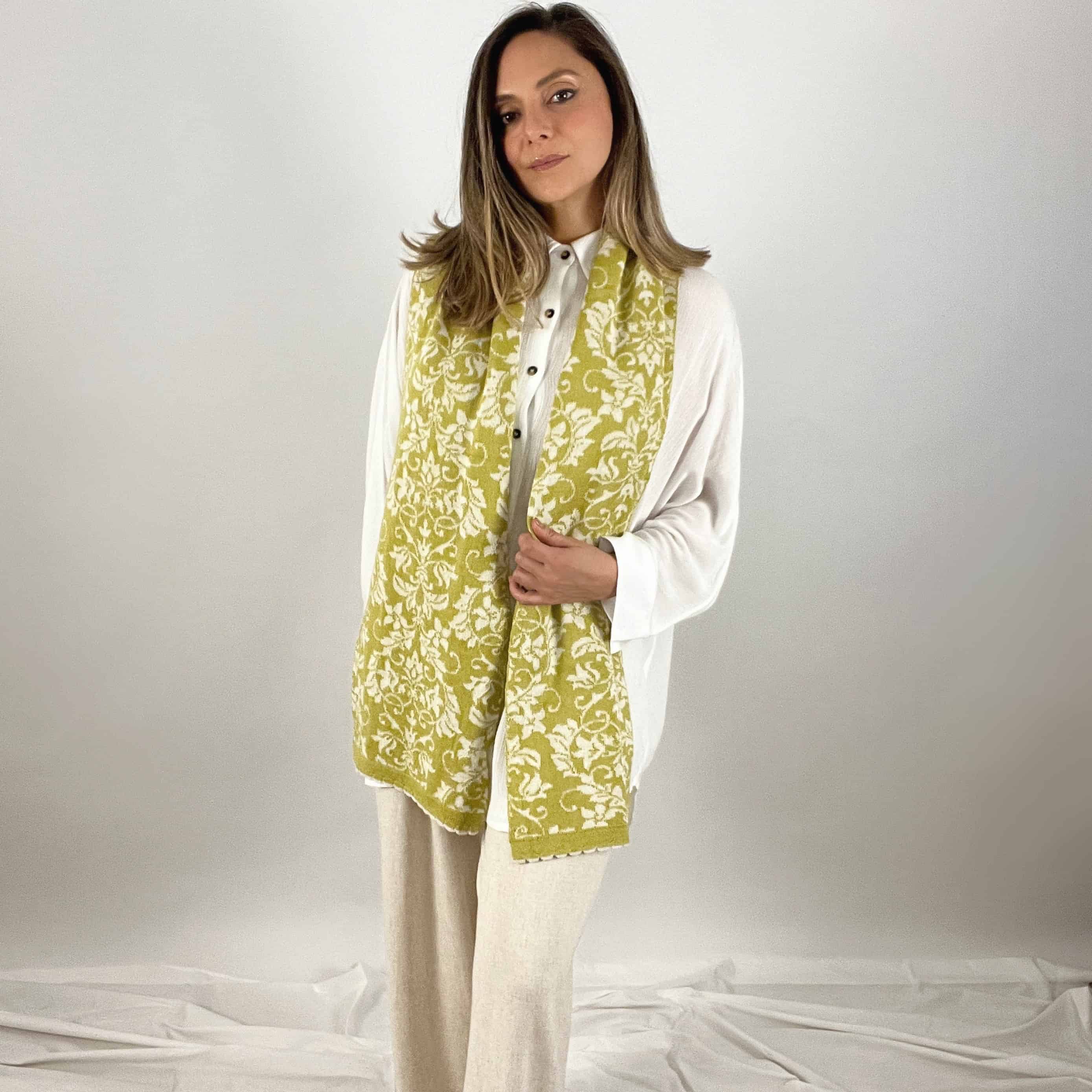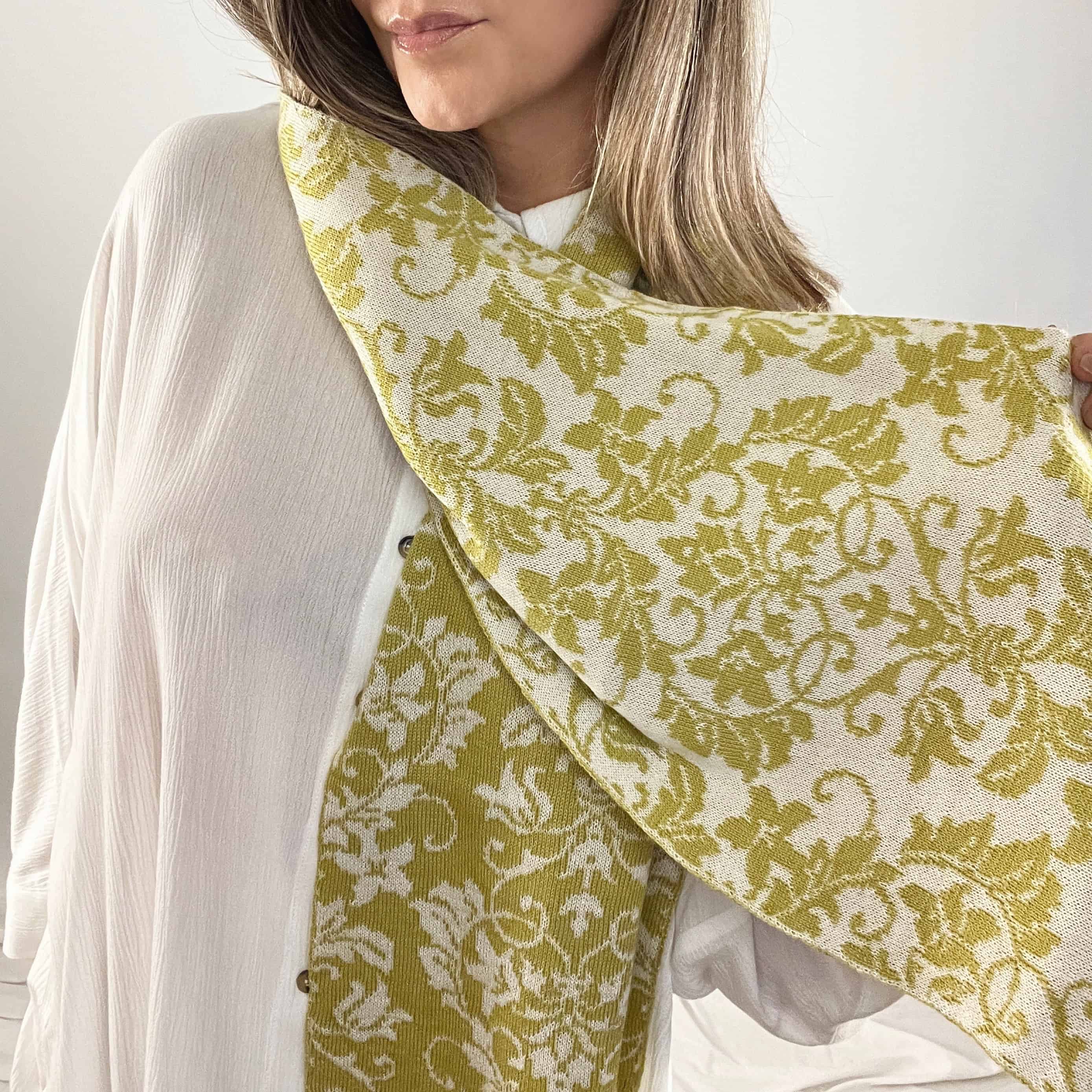 Chalina de baby alpaca, con motivos de flores. Súper suave y abrigadora.