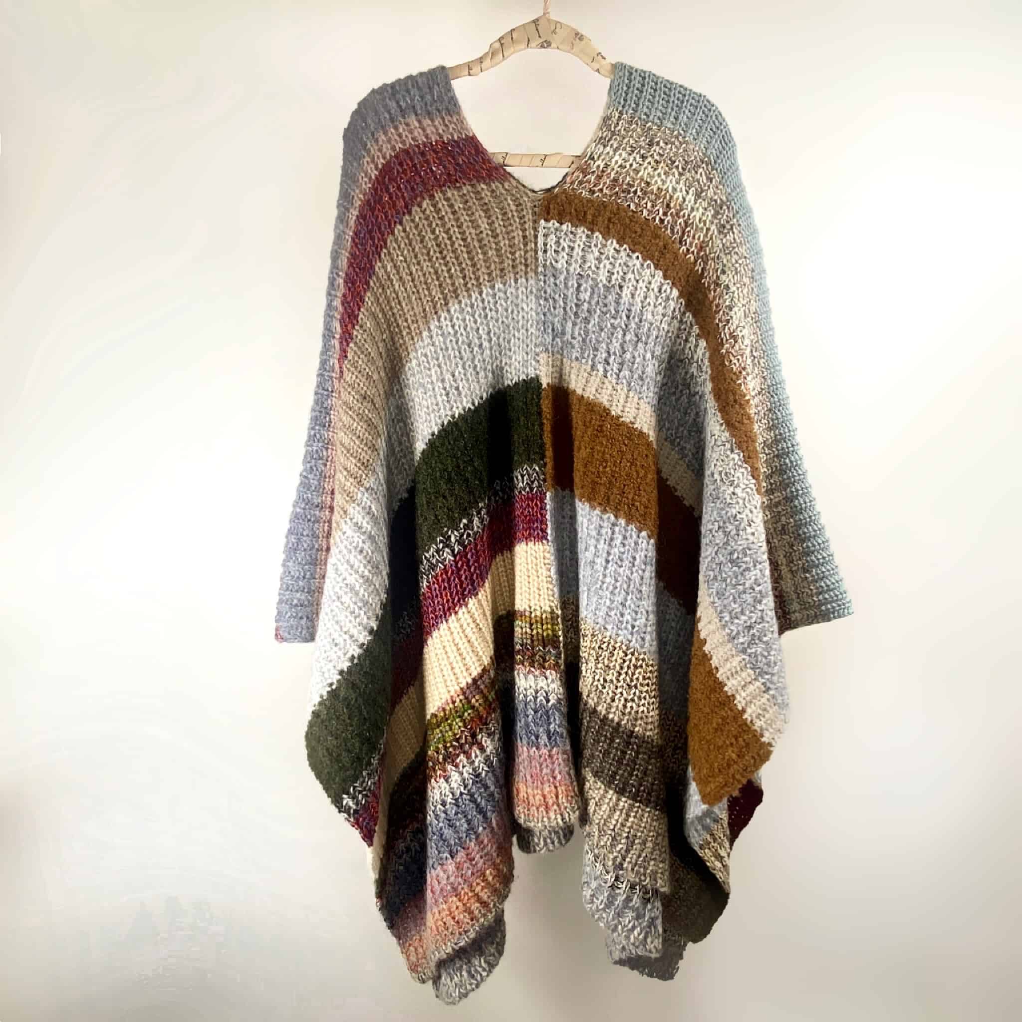Poncho de alpaca teñida a mano con tintes naturales. Tejido en máquina artesanal.