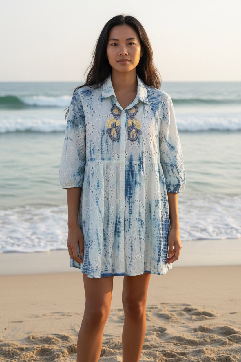 Diseño, confección y tela italiana. Vestido de manga larga con diseño inspirado en el estilo hindú. Su silueta suelta ofrece comodidad y movimiento, ideal para un look relajado y bohemio. Perfecto para usar en días cálidos o como pieza versátil para diferentes ocasiones.