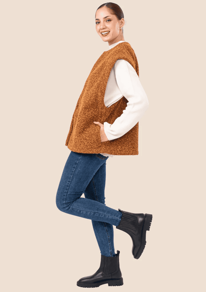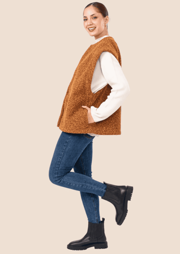 Chaleco de paño, perfecto para la estación. Cómodo y abrigador.