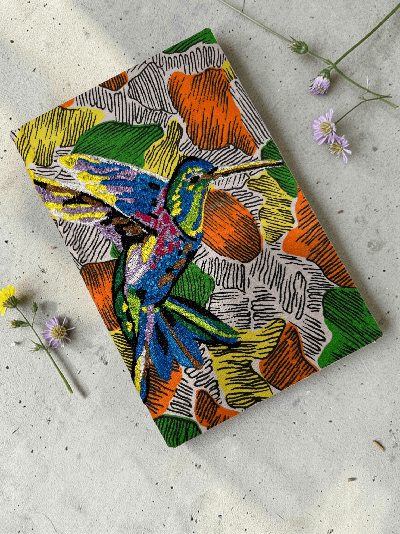 Colibrí volando 12 – Libreta bordada de encuadernación cosida