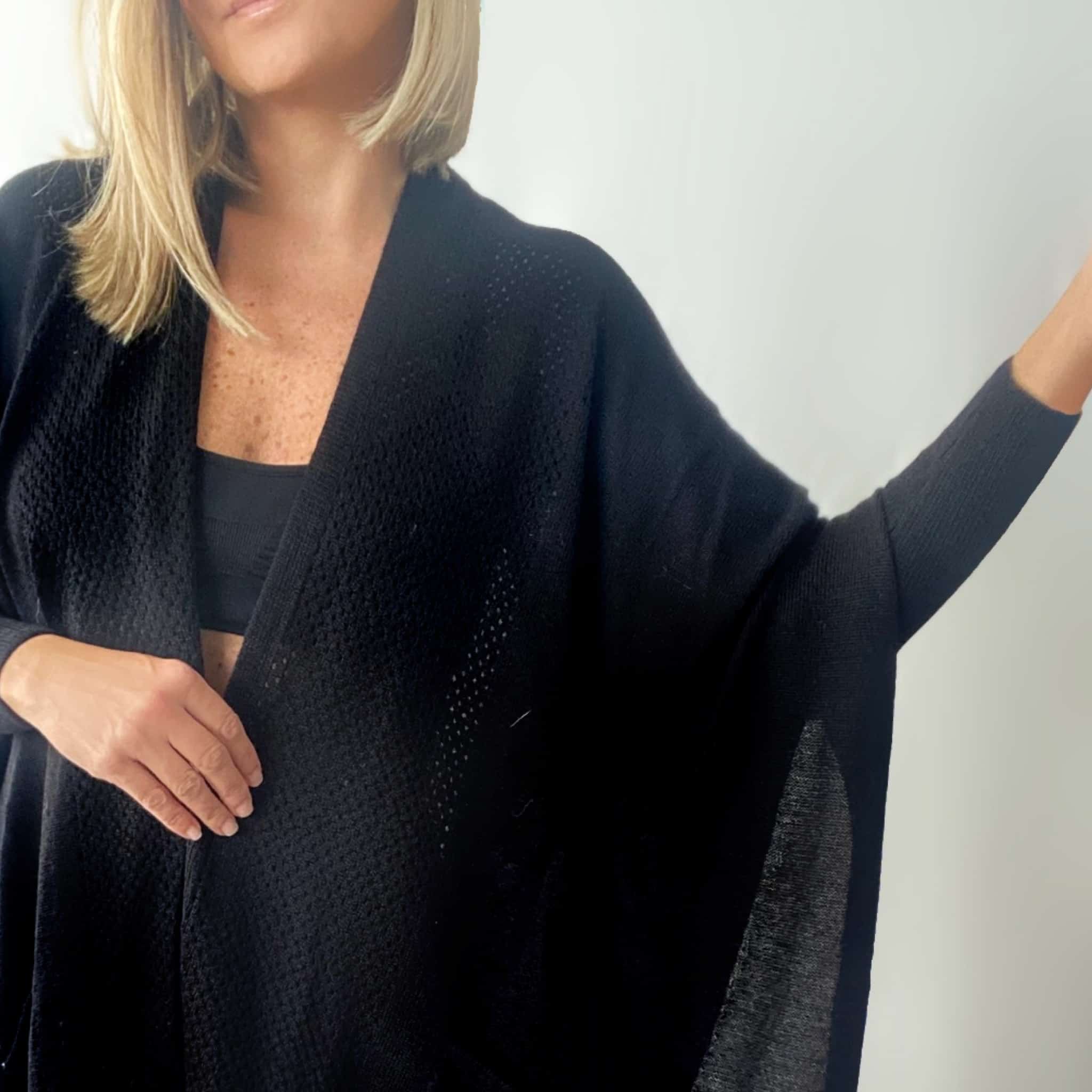 Cardigan de tejido ligero, súper suave y abrigador. Hecho por artesanos peruanos.