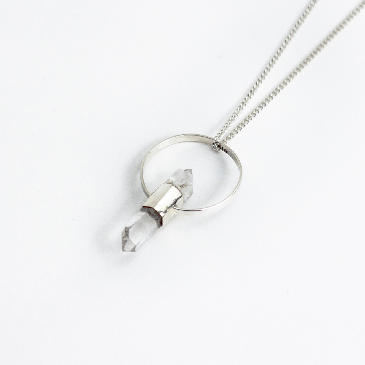 Collar de plata 925 y dije con aro y cuarzo. Hecho a mano.
