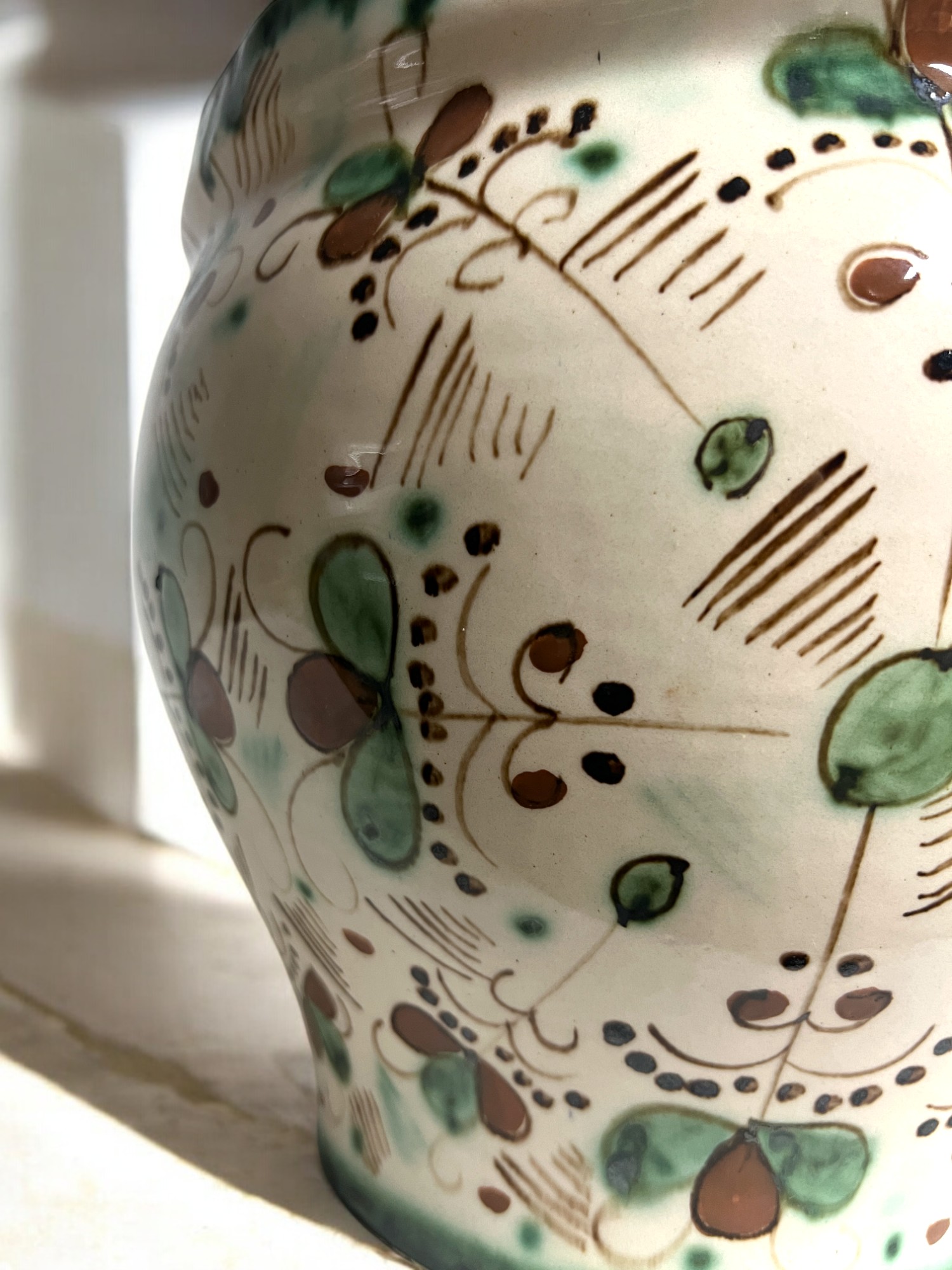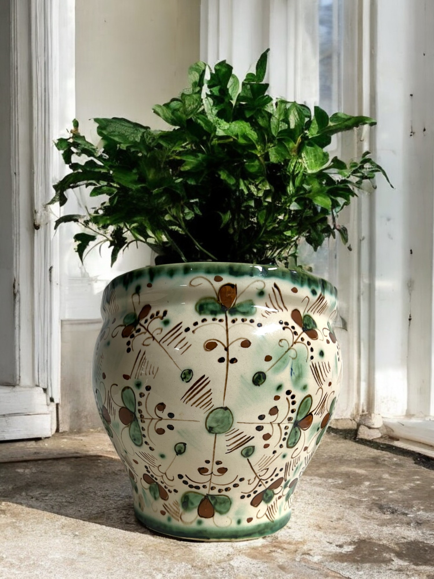 Maceta gorda mesa de cerámica hecha y pintada a mano por artesanos limeños. Cada pieza es única por su elaboración artesanal.