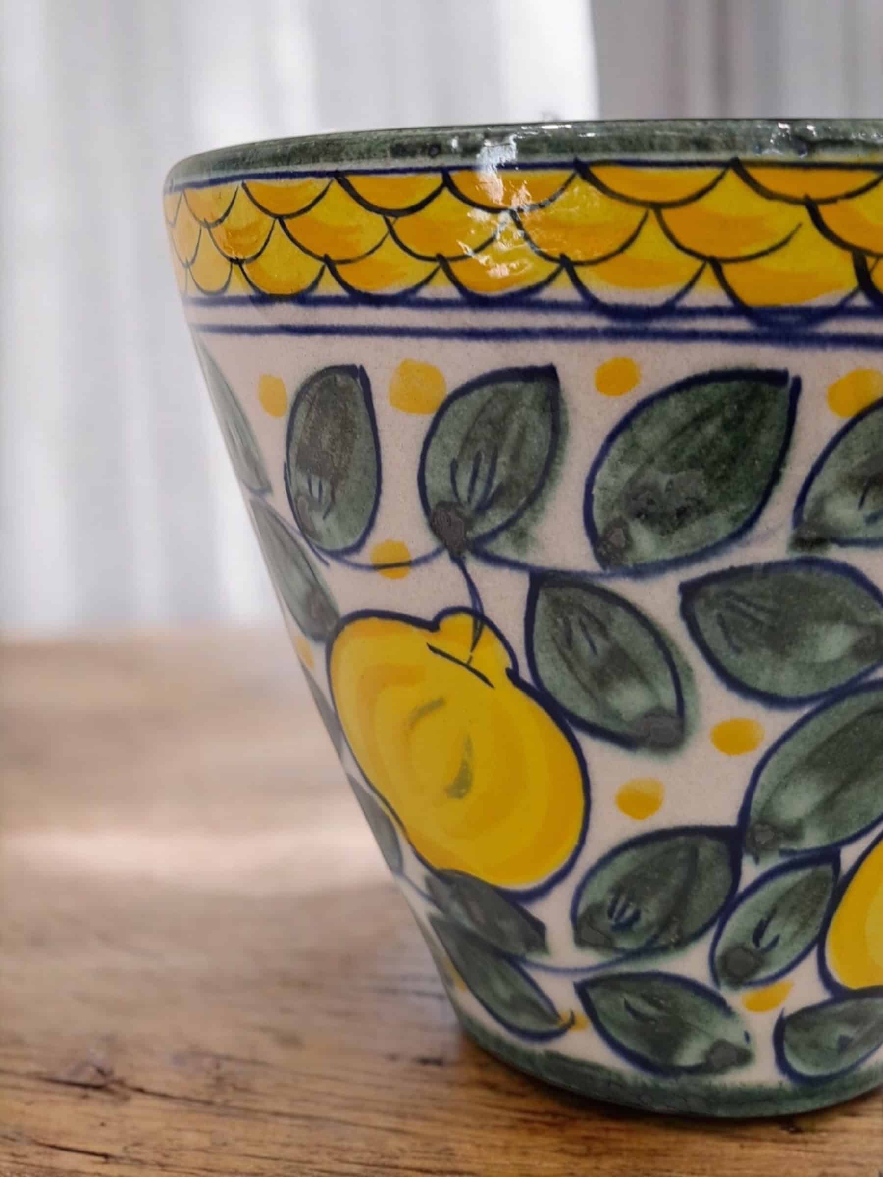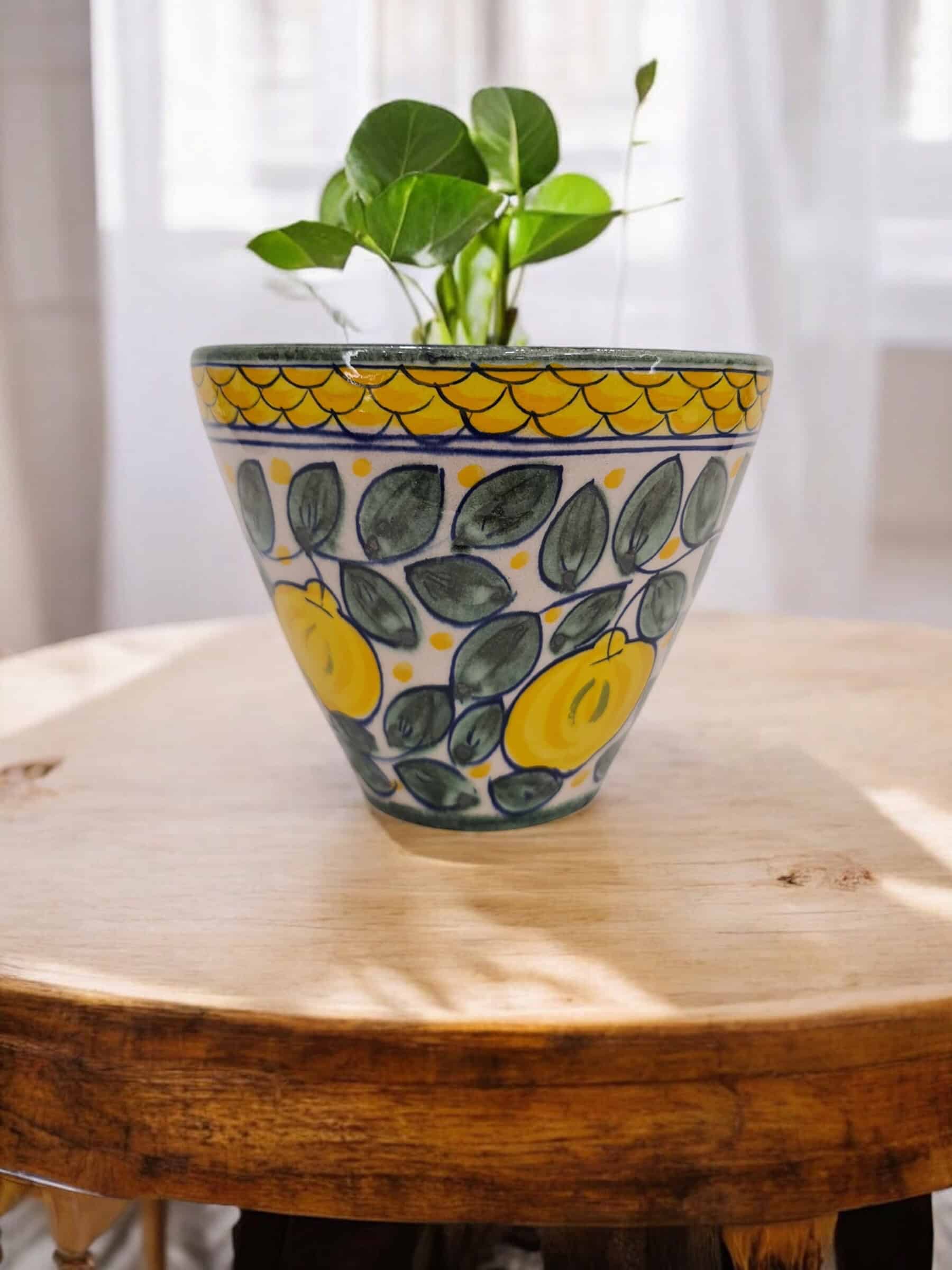 Maceta de cerámica con un diseño único. Elaborado a mano y pintando por artesanos limeños, ideal para cualquier plantita.