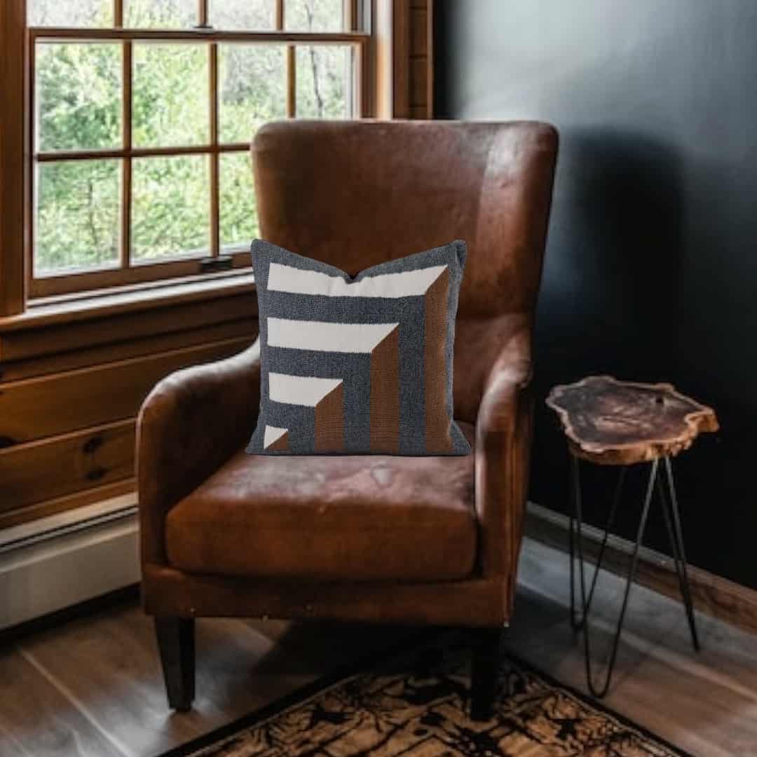 Cojín de fibra de oveja, hecho en telar a pedal por artesanos ayacuchanos. Teñido a mano con tintes naturales.