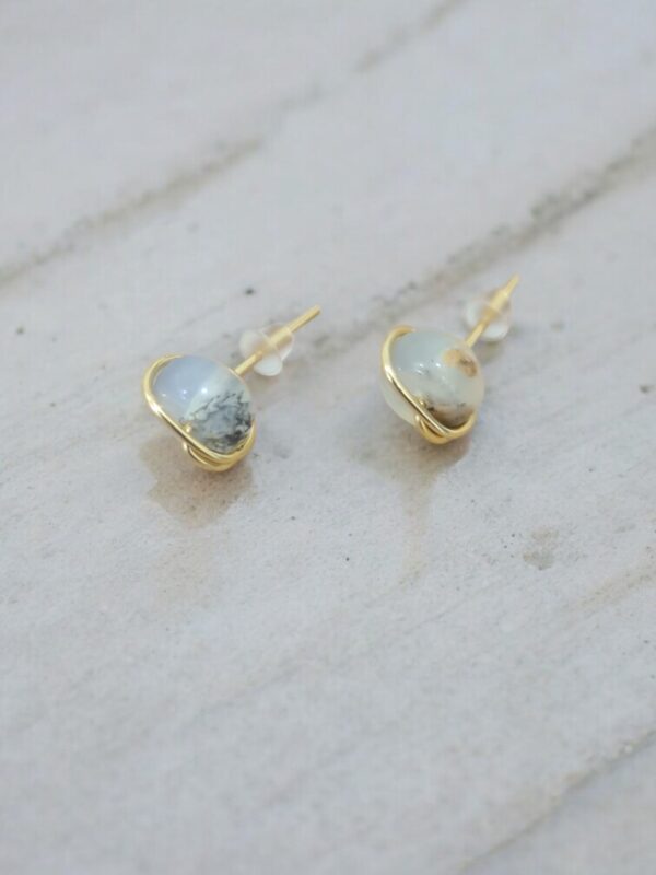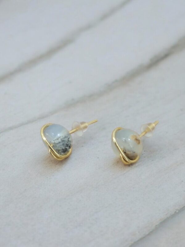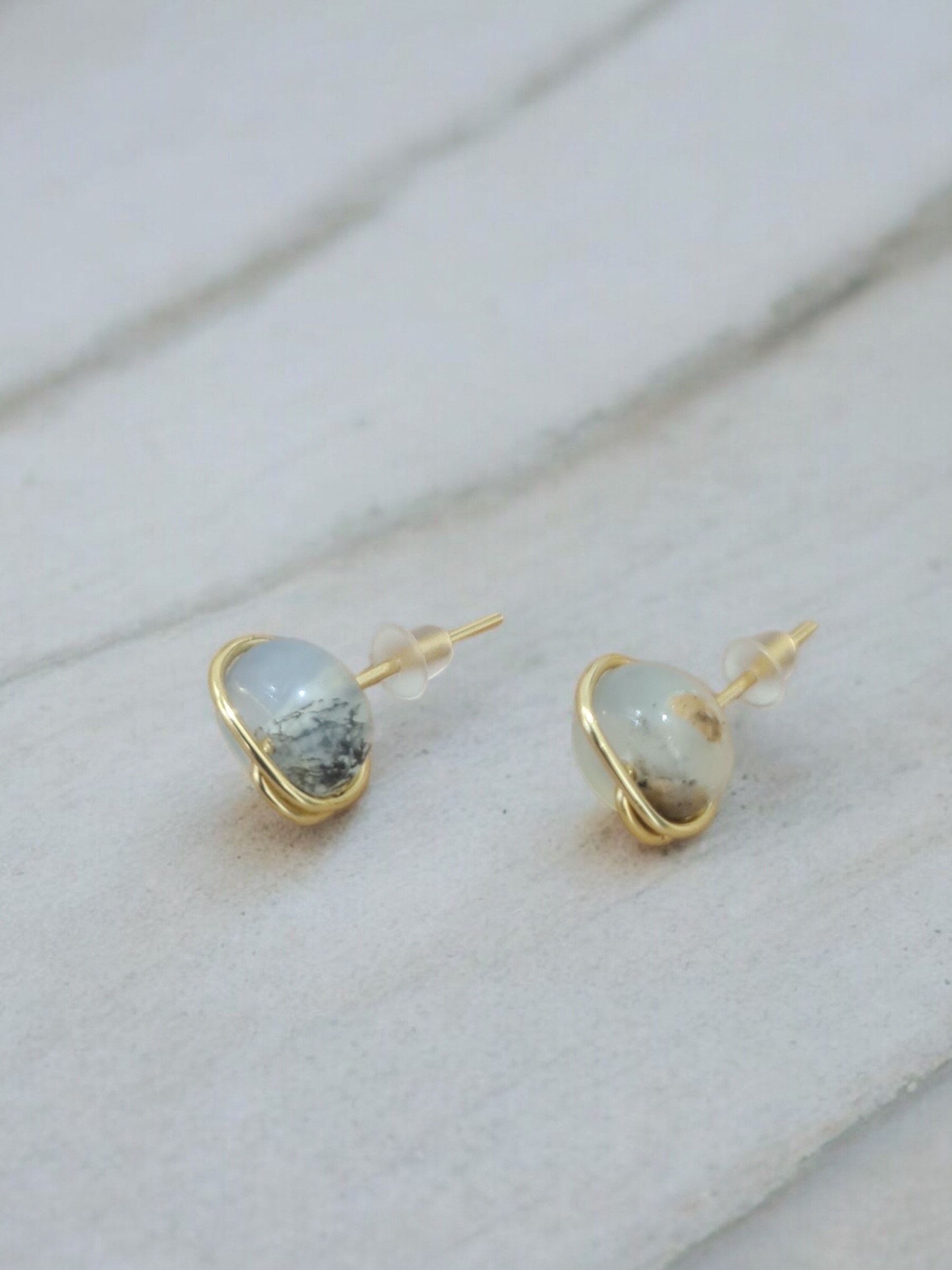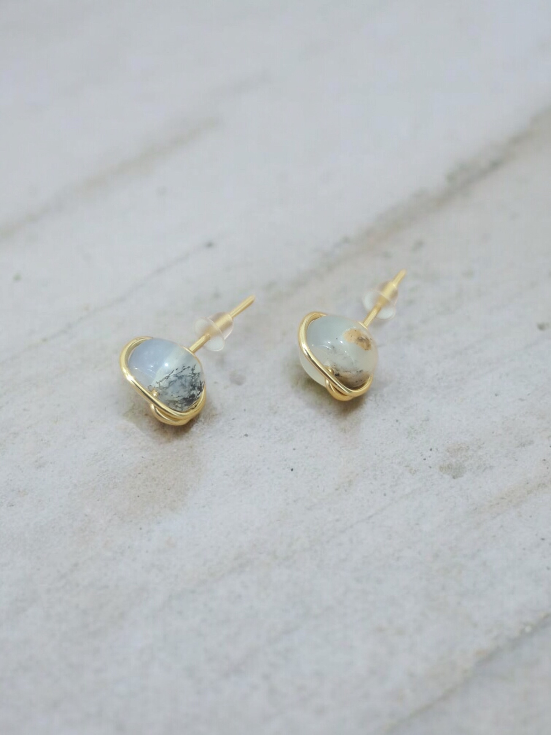 Trabajados a mano en alambre de cobre con polímero protector, entorchado en piedra opalo andino.