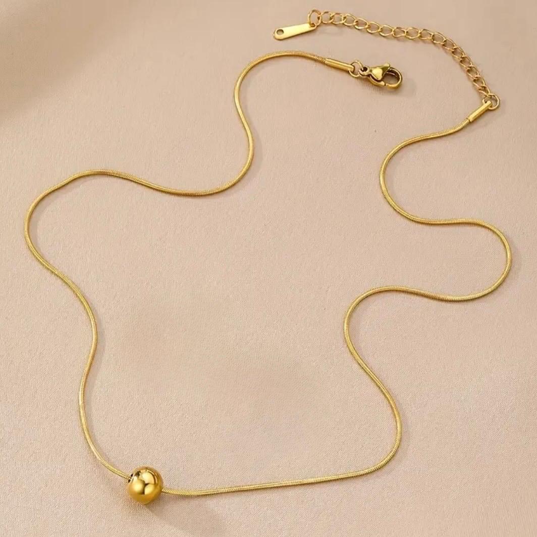 Collar en acero inoxidable con delicado dije en forma de esfera, ideal para un look sutil.