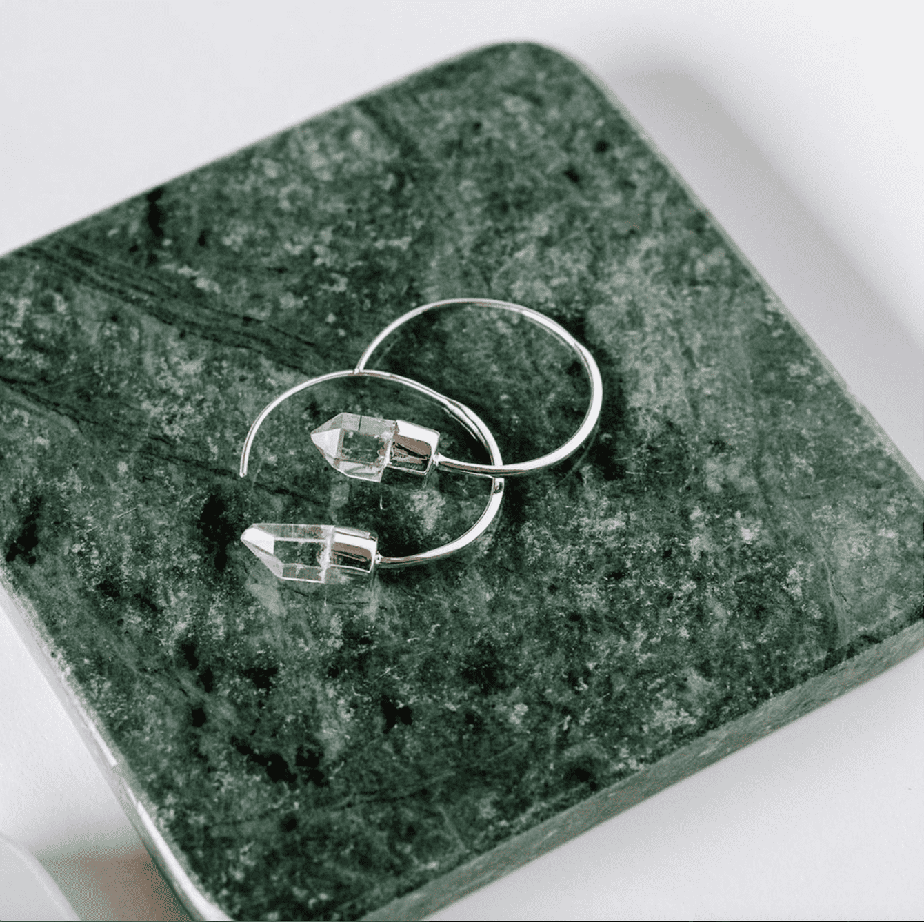 Arete de plata 950 y cuarzo cristal.
