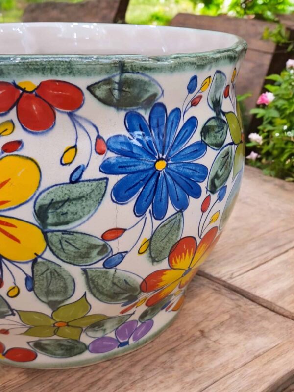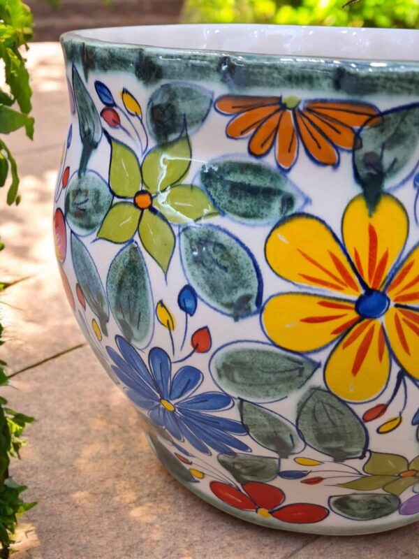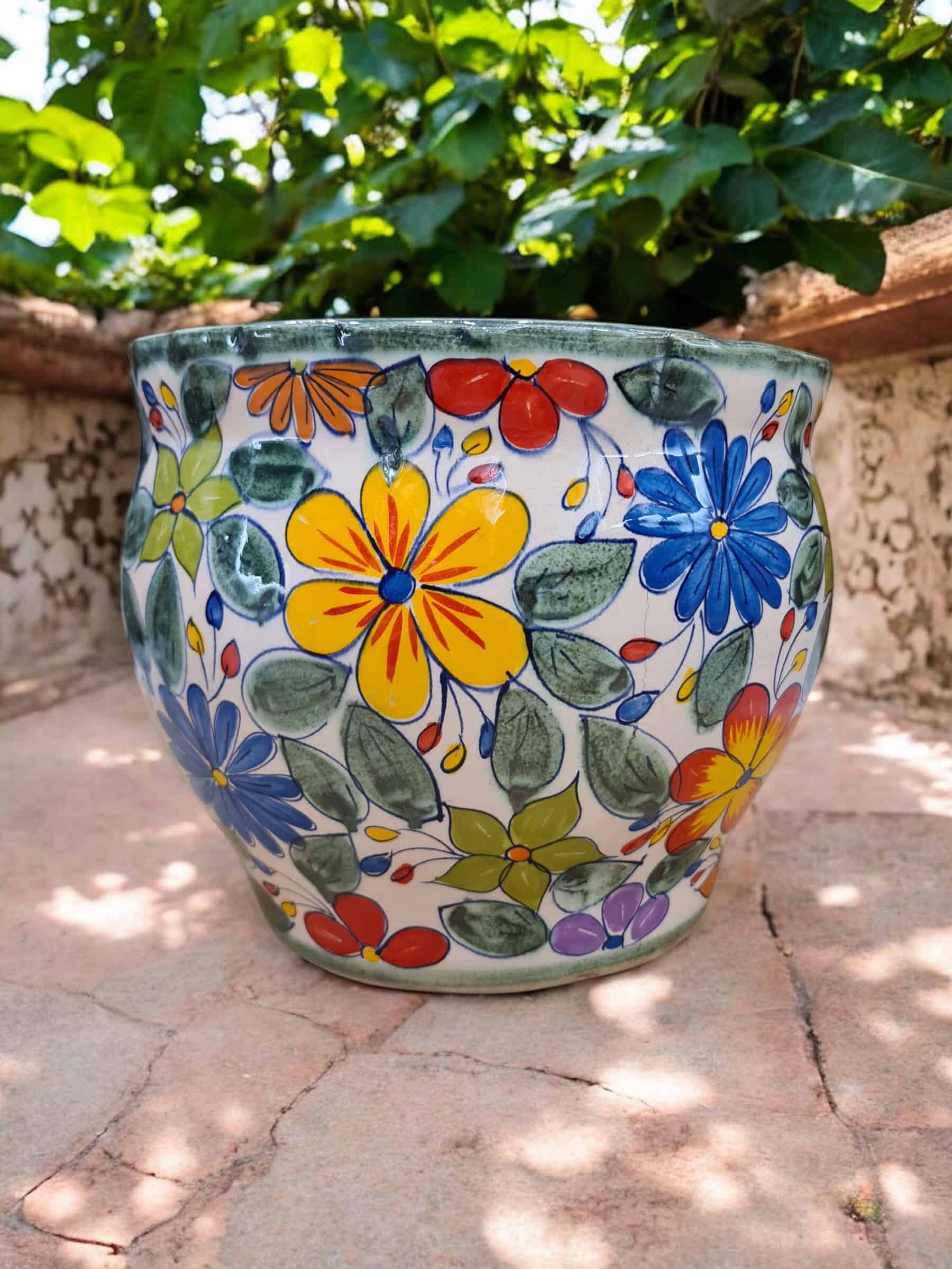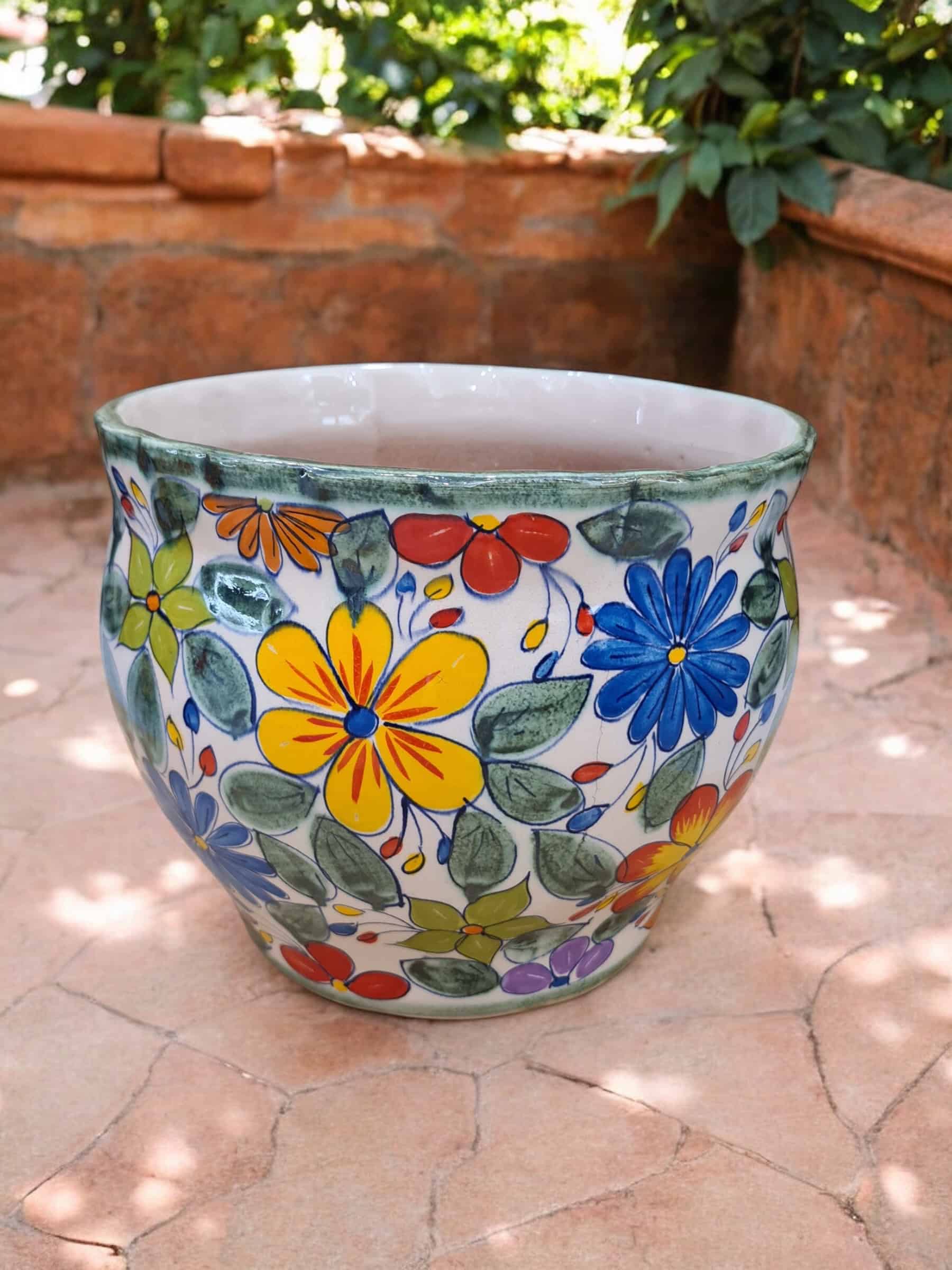 Flor Colorida – Maceta Gorda Ondeada de cerámica