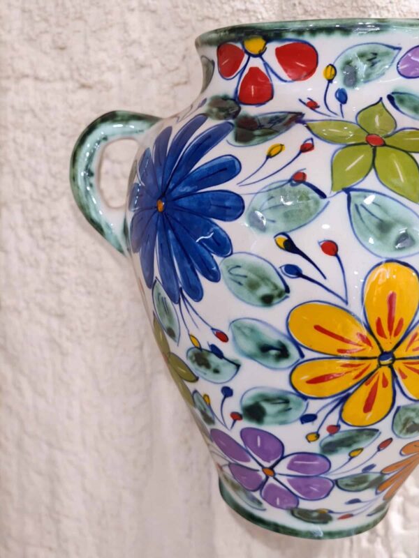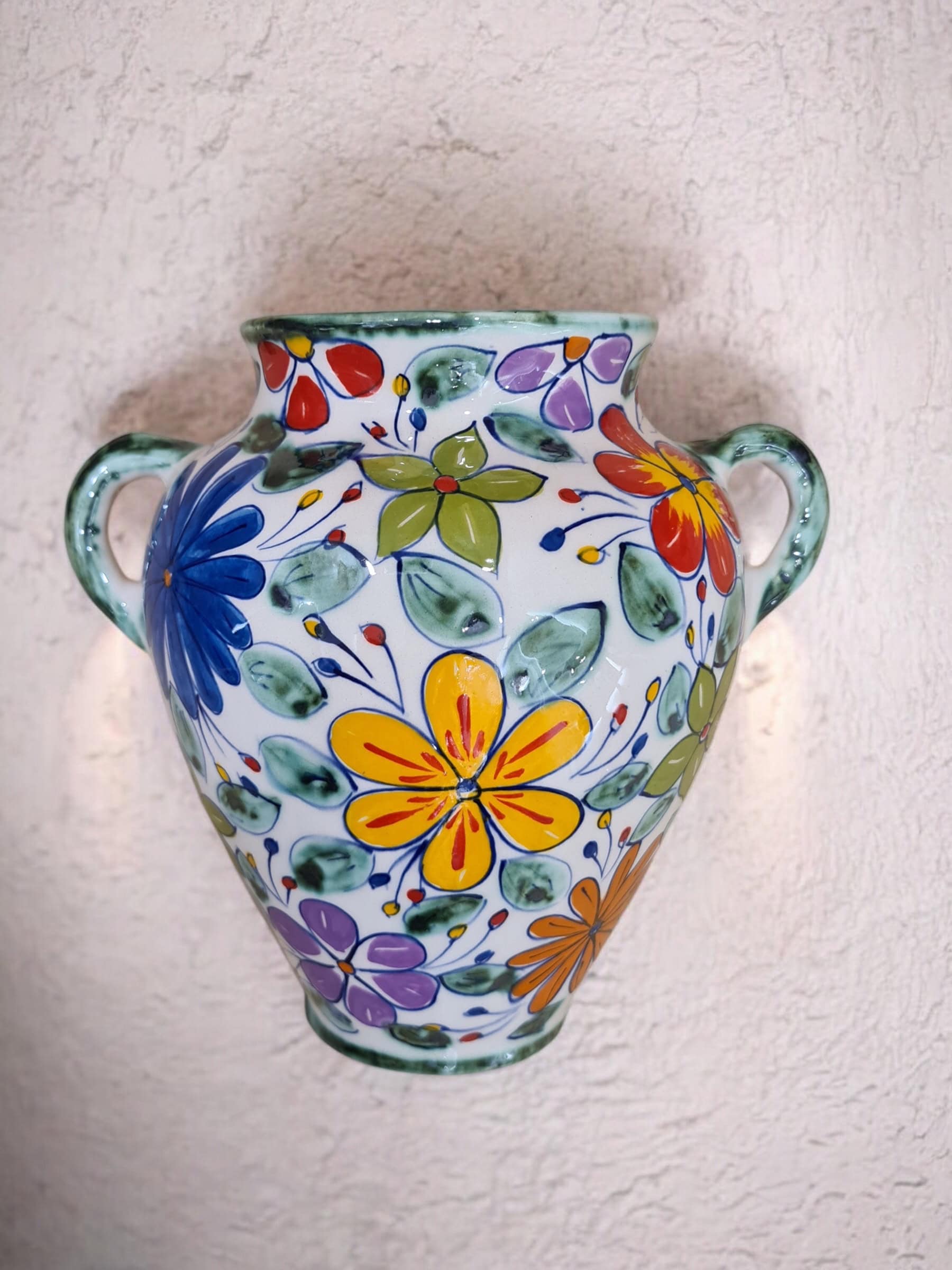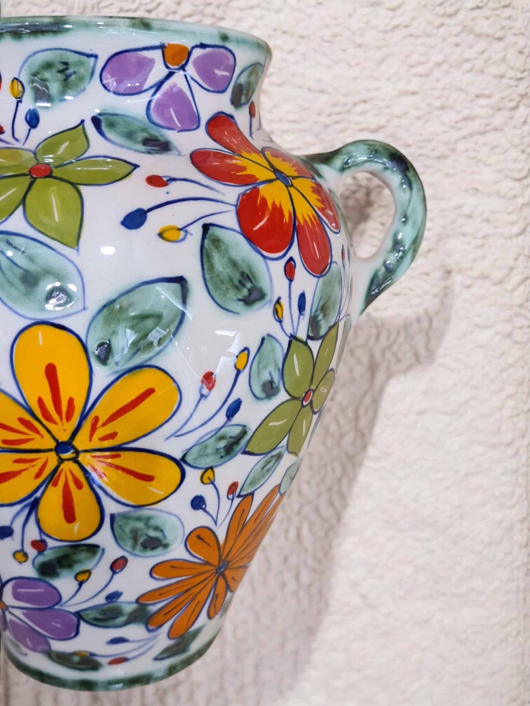 Media maceta colgante de cerámica hecha y pintada a mano por artesanos limeños. Ideales para orquídeas, plantas aromáticas, plantas de temporada, etc.