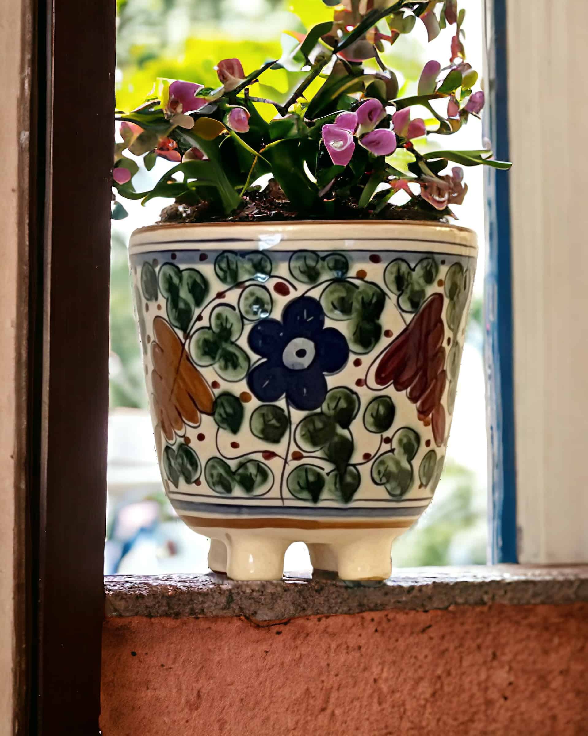 Maceta / Portaorquídea de cerámica hecha y pintada a mano por artesanos limeños. Ideales para orquídeas, plantas aromáticas, plantas de temporada, etc.
