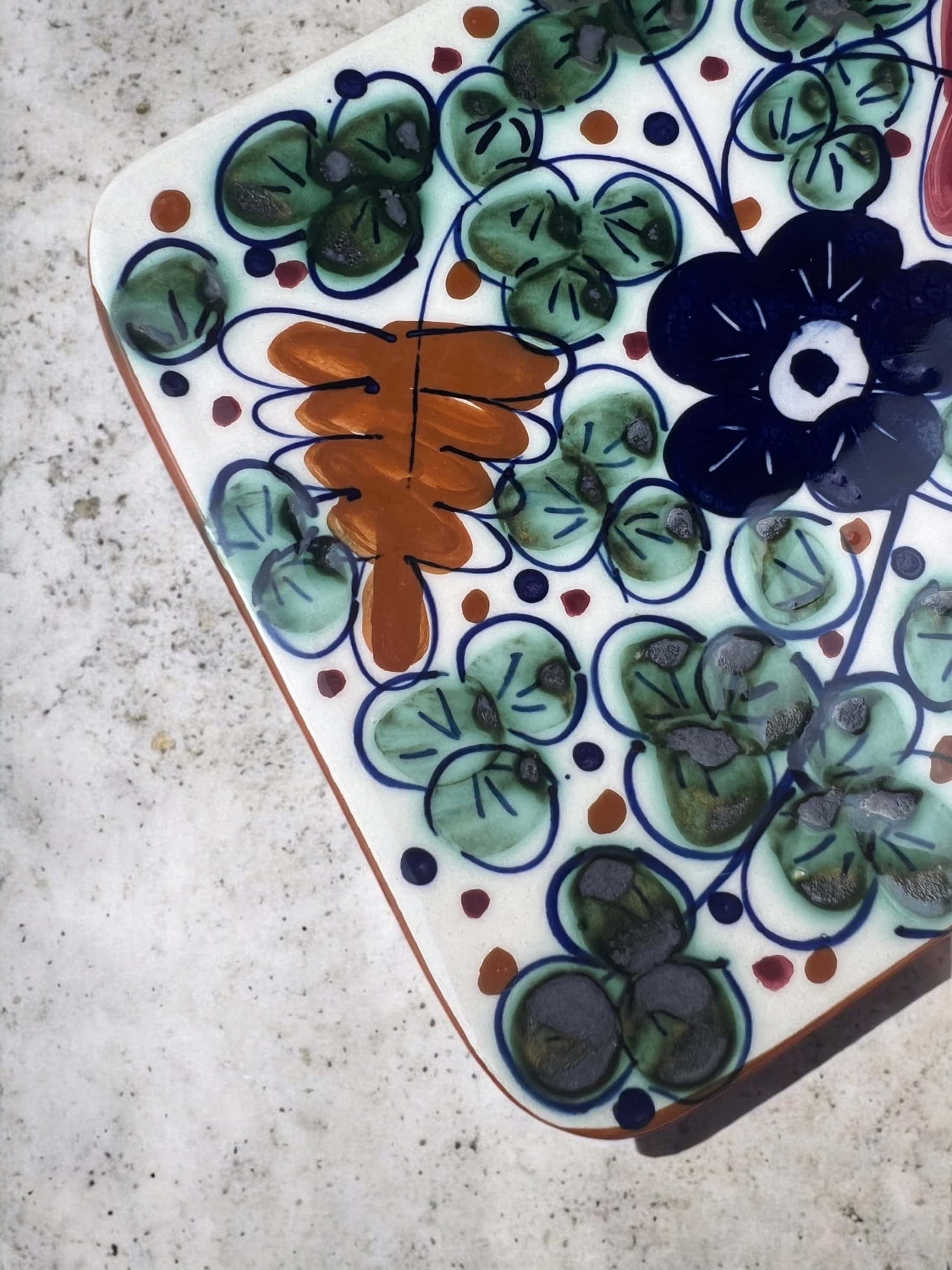 Mini tabla colgante de cerámica hecha y pintada a mano por artesanos limeños. Cada pieza es única por su elaboración artesanal.