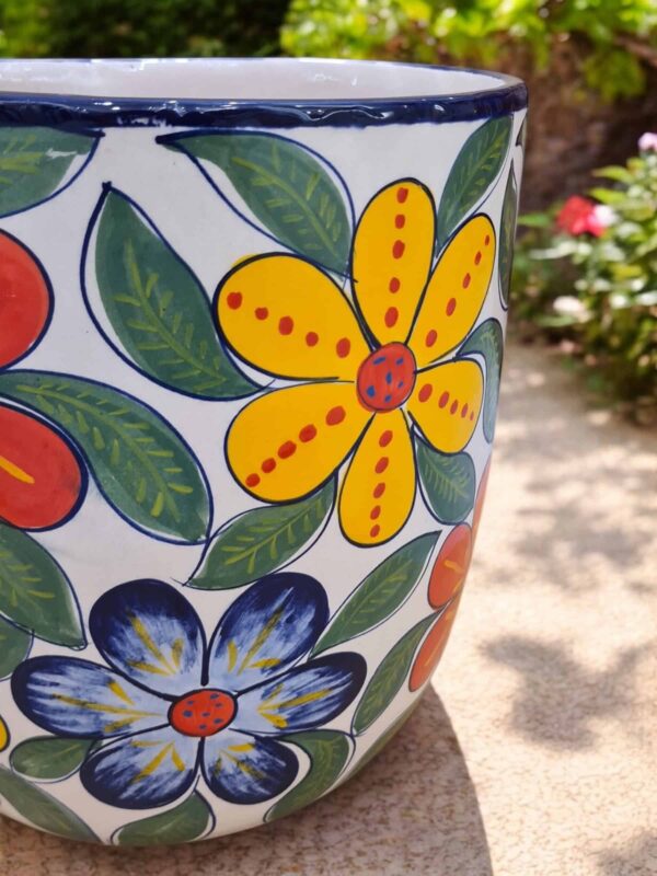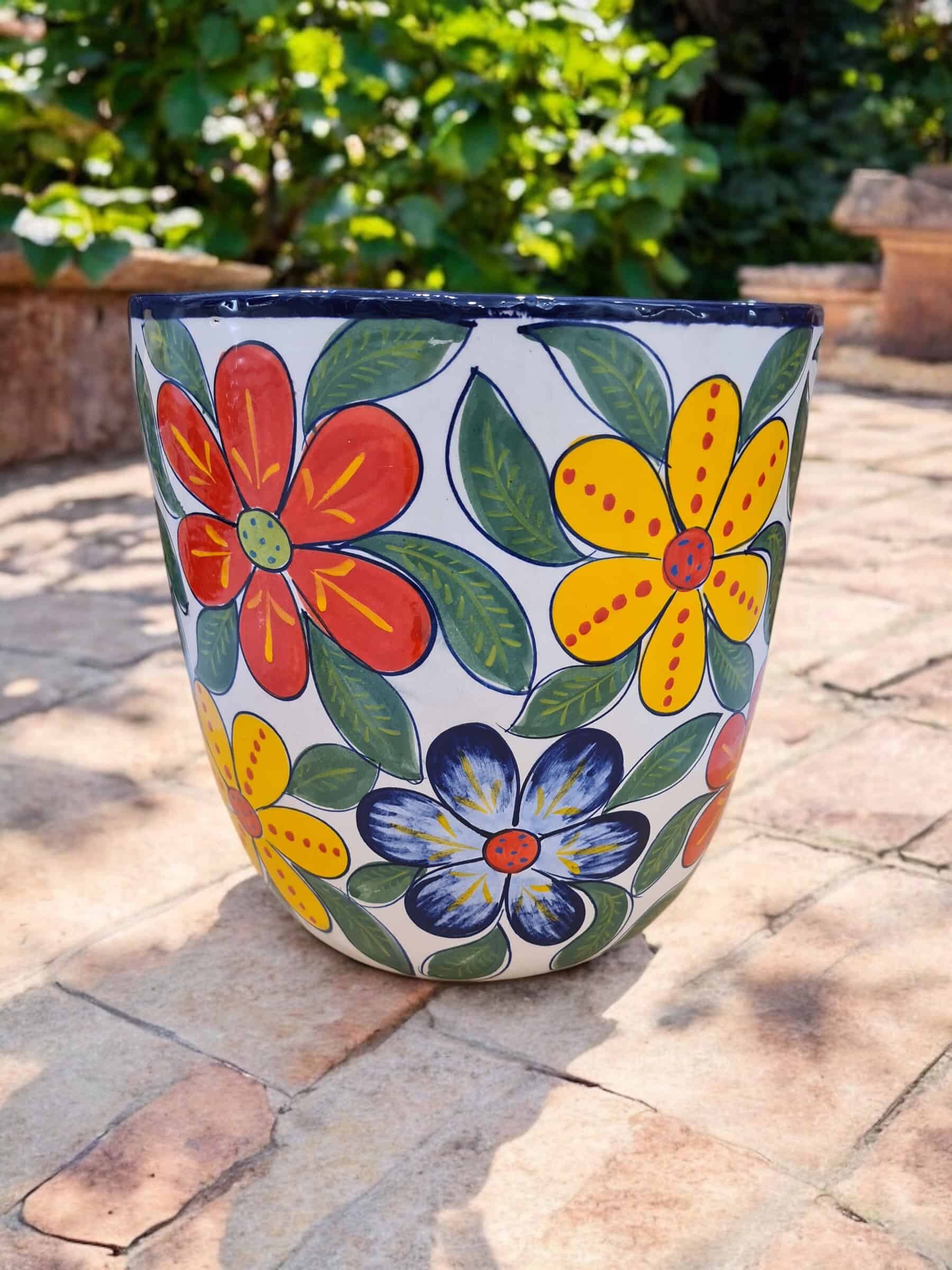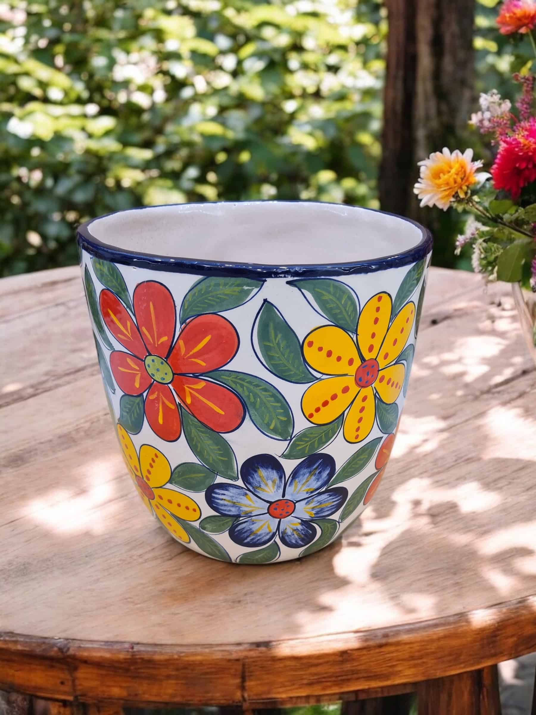 Maceta de cerámica hecha y pintada a mano por artesanos limeños. Ideales para orquídeas, plantas aromáticas, plantas de temporada, etc.